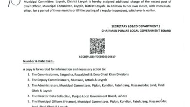 محکمہ بلدیات پنجاب نے 4 افسران کو چیف آفیسر کی اضافی ذمہ داریاں سونپ دی ہیں۔سیکرٹری بلدیات و چیئرمین لوکل…