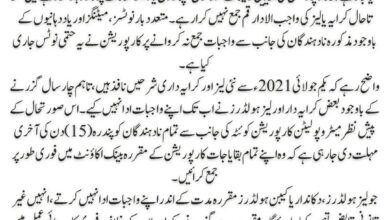 تمام لیز ہولڈرز، دکانداروں اور کیبن ہولڈرز کو ہدایت کی جاتی ہے کہ وہ 01 جولائی 2021ء سے نافذ نئی…