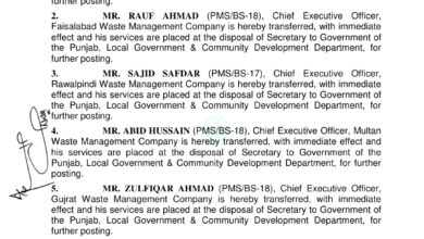 یہ افسران پی آر اے میں گریڈ اٹھارہ میں تعینات تھے۔پنجاب ریونیو اتھارٹی سے واپس بلائے جانے افسران میں ڈاکٹر…