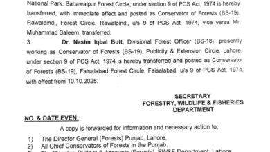 وائلڈلائف رینجرز پنجاب کے تین افسران کے تبادلے