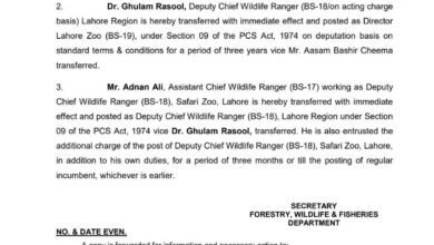 عدنان علی ورک دوبارہ ڈپٹی چیف وائلڈلائف رینجر سفاری زو لاہور تعینات، عدنان علی ورک کو تین ماہ کے لئے…