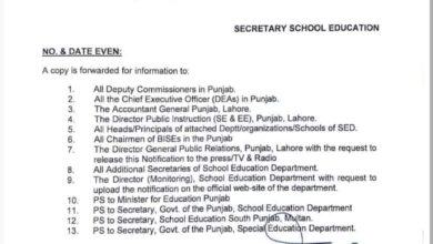 پنجاب کے سرکاری سکولوں میں گرمیوں کی چھٹیوں کا اعلان،نوٹیفکیشن