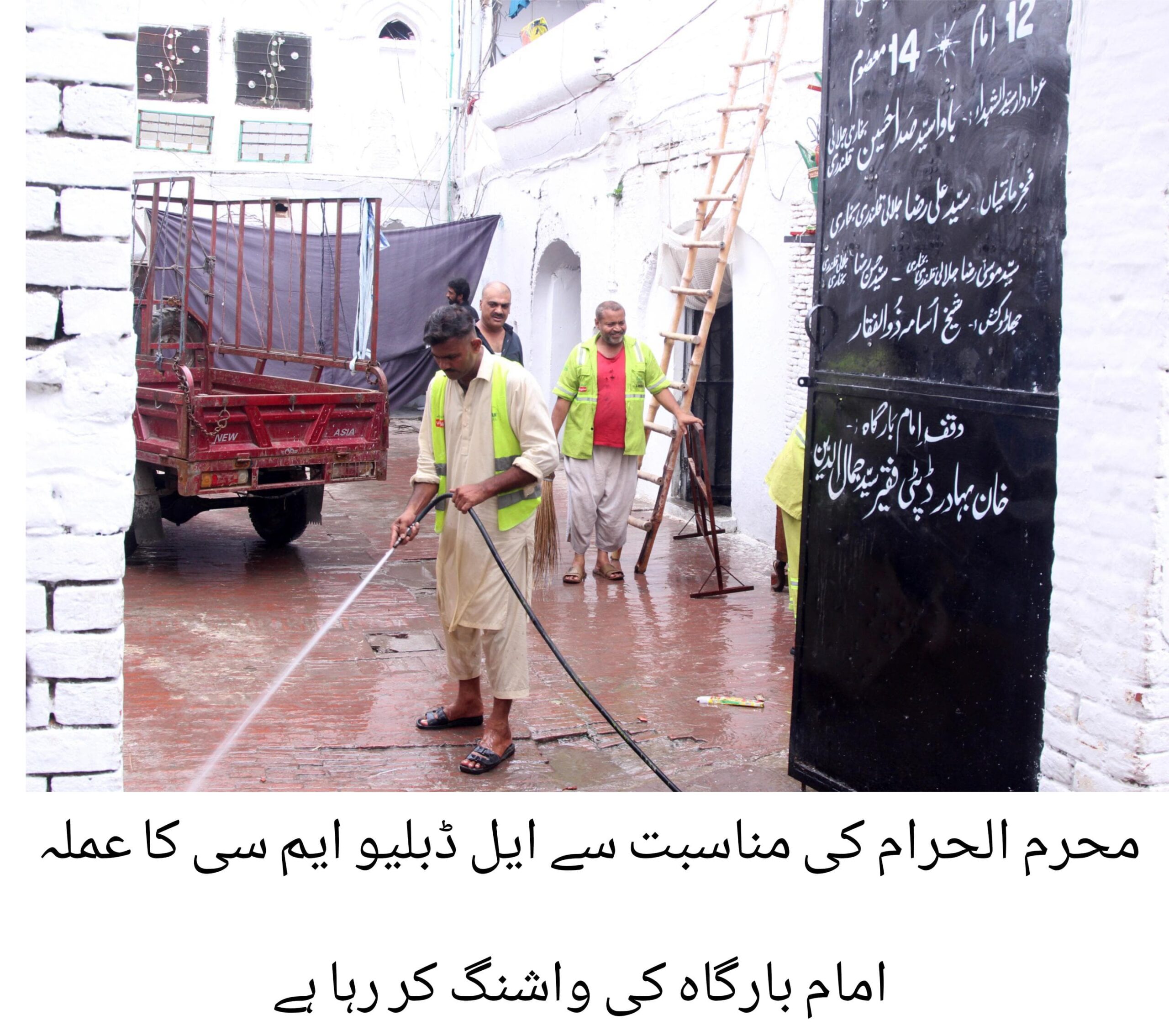 شہر بھر میں ہونے والی مجالس، امام بارگاہوں اور جلوسوں کے روٹس پر صفائی انتظامات کو یقینی بنایا جا رہا ہے اور جلوس کے راستوں پر خصوصی صفائی ٹیمیں تعینات ہیں۔راوی ٹاؤن میں 13، شالیمار ٹاؤن میں 15،واہگہ ٹاؤن میں 8، اور عزیز بھٹی ٹاؤن میں 7 امام بارگاہوں کی صفائی دھلائی کا عمل مکمل کر لیا گیا ہے، گلبرگ ٹاؤن میں 21، علامہ اقبال ٹاؤن میں 16 امام بارگاہوں کی صفائی ستھرائی مکمل کی جا رہی ہے۔نشتر ٹاؤن 10، سمن آباد ٹاؤن میں 11، داتا گنج بخش ٹاؤن میں 19 امام بارگاہوں کی صفائی دھلائی کا عمل بھی جاری ہے۔مزید برآں محرم الحرام صفائی پلان کے مطابق زائرین کی سہولت کے لیے جلوسوں کے روٹس پر موجود کنٹینرز کو بر وقت خالی کیا جا رہا ہے۔موچی گیٹ سے کربلا گامے شاہ، شادمان سے شاہ جمال، پانڈو سٹریٹ اسلام پورہ سے پرانی انار کلی، علی رضا آباد رائیونڈ، اور ٹھوکر گاؤں جلوس کے راستوں پر ایل ڈ بلیو ایم سی کی آپریشن ٹیمیں صفائی پر مامور ہیں۔ سی ای او ایل ڈبلیو ایم سی بابر صاحب دین کا مزید کہنا ہے کہ محرم الحرام کے پورے مہینے اور خصوصاً پہلے 10 ایام میں صفائی کے خصوصی انتظامات کیے جارہے ہیں۔ ایل ڈبلیوایم سی کا 900 سے زائد عملہ اور تمام مشینری تینوں شفٹوں میں خصوصی صفائی آپریشن پر تعینات ہے۔ ایل ڈبلیو ایم سی کنٹرول روم سے صفائی انتظامات کی نگرانی اور شہریوں کی شکایات کے فوری ازالے کو یقینی بنایا جا رہا ہے۔محرم الحرام میں جلوسوں کے راستوں کی صفائی کے لیے تمام تر وسائل کو بروئے کار لایا جا رہا ہے۔ سی ای او ایل ڈبلیو ایم سی بابر صاحب دین نے مجالس اورجلوس کے شرکاء سے بھی گزارش کی ہے کہ ایل ڈبلیو ایم سی کے عملے سے تعاون کریں۔کوڑا ہمیشہ کوڑے دان میں ڈالیں۔صفائی سے متعلق شکایات کے ازالے کے لیے ایل ڈبلیو ایم سی کی ہیلپ لائن 1139پر رابطہ کریں یا سوشل میڈیا کا استعمال کریں۔