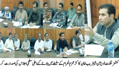 کمشنر قلات ڈویژن شاہزیب خان کاکڑ کی سربراہی میں محرم الحرام کے سلسلے میں فول پروف سیکورٹی انتظامات اور امن…