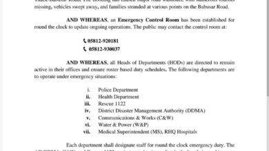ڈپٹی کمشنر دیامر عطاء الرحمٰن کاکڑ نے بابوسر روڈ پر ایمرجنسی نافذ کر دی، چلاس ، تھک، بابوسر روڈ پر بڑے سیلاب کے پیش نظر نوٹیفکیشن جاری