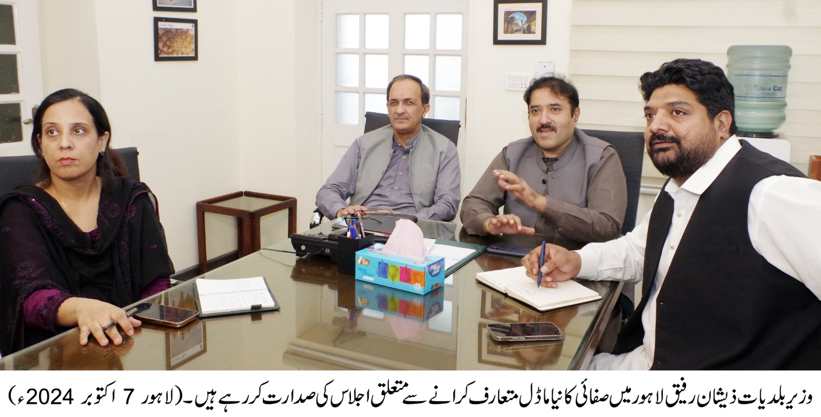 وزیر بلدیات ذیشان رفیق کی زیر صدارت ایک اجلاس کے دوران وزیراعلٰی مریم نواز شریف کے ستھرا پنجاب پروگرام اور لاہور میں صفائی کے نئے ماڈل پر غور کیا گیا۔ سیکرٹری لوکل گورنمنٹ پنجاب شکیل احمد میاں اور ایڈیشنل سیکرٹری ماریہ طارق بھی شریک ہوئے۔ لاہور ویسٹ مینجمنٹ کمپنی(ایل ڈبلیو ایم سی) کے سی ای او بابر صاحب دین نے نئے ماڈل کے مختلف پہلوئوں پر بریفنگ دی۔