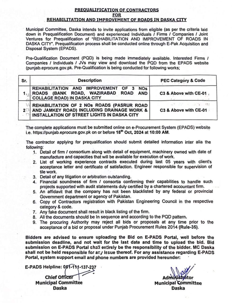 کروڑ روپے کی لاگت سے ڈسکہ سٹی کی 5 اہم سڑکوں کی تعمیر، بحالی ، امپرومنٹ، اسٹریٹ لائٹس اور منصوبوں کے ٹینڈر بھیج دئیے گئے ہیں، جن میں کالج روڈ۔بنک روڈ۔جامکے روڈ۔پسرور روڈ۔ اور وزیر آباد روڈ شامل ہیں۔