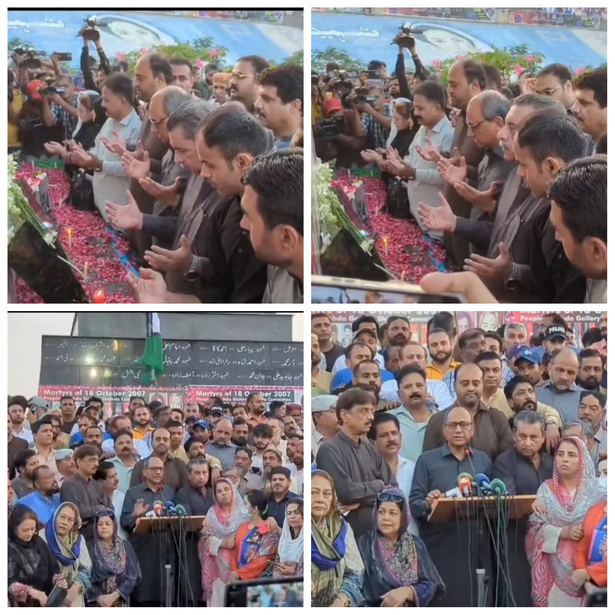 صوبائی وزیر بلدیات و صدر پی پی پی کراچی ڈویژن سعید غنی، ڈپٹی میئر کراچی سلمان عبداللہ مراد, صوبائی مشیر کچی آبادیز و لائیو سٹاک نجمی عالم اور دیگر پارٹی عہدیداروں نے شہدا کارساز کے مقام پر حاضری دی اور فاتحہ خوانی کی۔
