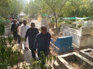 وزیر بلدیات سندھ سعید غنی نے سانحہ کارساز کے اعظم بستی قبرستان میں مدفون 7 شہداء کی قبروں پر حاضری دی اور فاتحہ خوانی کی۔