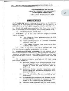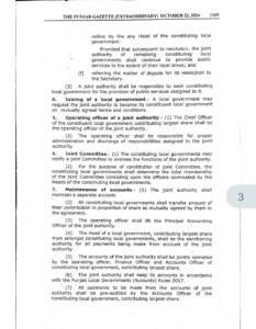 مشترکہ اتھارٹیز کے قیام کا نوٹیفکیشن جاری کیا گیا ہے۔جس کے تحت ایک ضلع میں دو یا دو سے زیادہ مقامی کے سربراہ ایک تحریری معاہدہ کے ذریعے ایسی ایک یا زیادہ عوامی خدمت کی فراہمی کے لئے مشترکہ اتھارٹی قائم کر سکتے ہیں جو ایکٹ کے تحت انہیں تفویض کردہ کام سے متعلق ہیں۔رولز میں جوائنٹ اتھارٹی کے لئے قواعد و ضوابط بھی واضح کئے گئے ہیں۔بلدیاتی اداروں کے اختیارات مزید کم کر کے نئی اتھارٹیز کی راہیں ہموار کی گئی ہیں۔محکمہ بلدیات پنجاب اس سے قبل سابق وزیر اعلٰی پنجاب اور موجودہ وزیر اعظم میاں شہباز شریف کے دور سے بلدیاتی اداروں کے اختیارات سلب کر کے اتھارٹیز اور کمپنیوں کو منتقل کرتا چلا آ رہا ہے۔