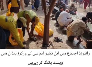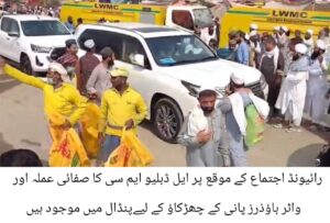 ایل ڈبلیو ایم سی کی جانب سے سالانہ رائیونڈ تبلیغی اجتماع کے موقع پر صفائی کے بہترین انتظامات کا سلسلہ جاری ہے۔سی ای او ایل ڈبلیو ایم سی بابر صاحب دین کی ہدایت پر120 سے زائد ورکرز، 25 گاڑیاں تبلیغی اجتماع کے صفائی انتظامات پر مامور ہیں جبکہ اجتماع کے دوران 3 واٹر باؤذرذ اجتماع گاہ کے گرد پانی کے چھڑکاؤ کو یقینی بنا رہے ہیں۔