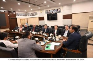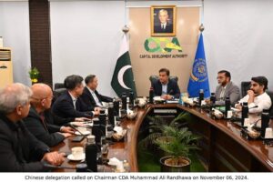 اسلام آباد میں باہمی تعاون اور شہری ترقی کی راہیں تلاش کرنے کے لیے چین کے ایک وفد نے سی ڈی اے ہیڈ کوارٹرز میں چیئرمین کیپٹل ڈویلپمنٹ اتھارٹی (سی ڈی اے) محمد علی رندھاوا سے ملاقات کی۔