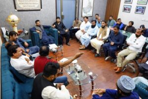 میئر حیدرآباد کاشف شورو نے حزب مخالف کےUC چیئرمینوں کے مسائل کو تفصیل سے سنا۔اس موقع پر میئر حیدرآباد نے اپوزیشن کے اراکین سے بات چیت کرتے ہوئے کہاکہ ہم تمام تر امتیاز سے بالاتر ہو کر عوامی خدمت پر یقین رکھتے ہوئے بلدیہ اعلٰی کے وسائل کو استعمال کررہے ہیں۔حیدرآباد شہر عرصہ سے مسائل کا شکار رہا ہے یہی وجہ ہے کہ سے اپوزیشن سمیت تقریبا تمام بلدیاتی نمائندوں کی یوسیز کو یکساں مسائل کا سامنا ہے۔ انہوں نے کہا کہ حیدرآباد کی صورتحال کو بہتر بنانے کیلئے ہم اپنی تمام تر توانائیاں بروئے کار لا رہے ہیں۔ اور شہر کے چھوٹے چھوٹے مسائل کے ساتھ ساتھ اس شہر کے بڑے ترقیاتی منصوبوں پر بھی کام کررہے ہیں ۔اپوزیشن سمیت کسی بھی رکن کے کاموں کو نظر انداز نہیں کیا جائے گا۔