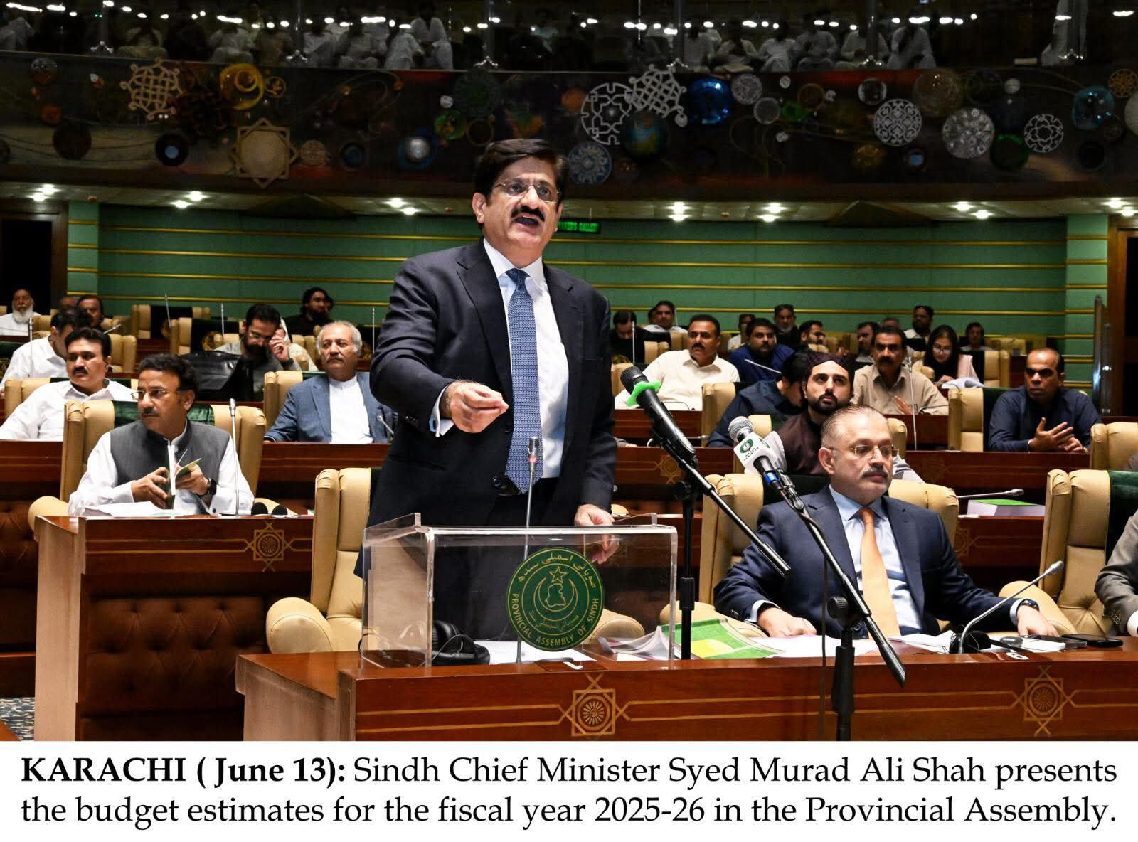 وزیراعلیٰ سندھ سید مراد علی شاہ نے مالی سال 2025-26 کے لیے صوبائی بجٹ تخمینے اسمبلی میں پیش کیے جن کا کل حجم 3451.87 ارب روپے ہے جبکہ بجٹ میں 38.458 ارب روپے کا خسارہ ظاہر کیا گیا ہے۔ یہ پچھلے مالی سال 2024-25 کے بجٹ تخمینے (3056.3 ارب روپے) کے مقابلے میں 12.9 فیصد زیادہ ہے۔