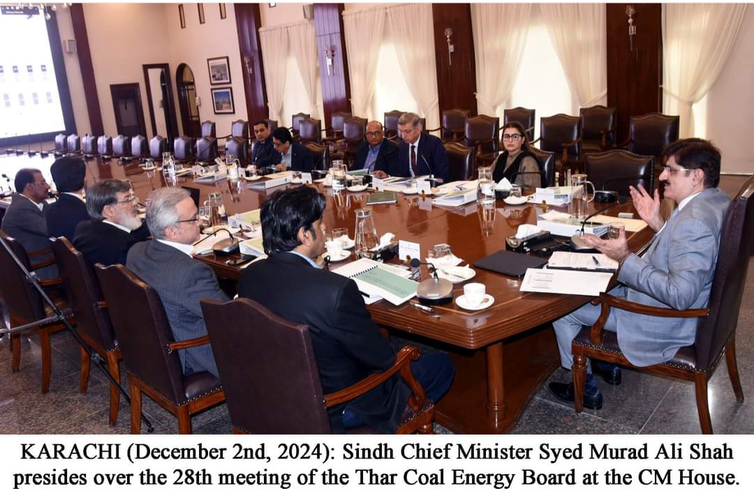 وزیراعلیٰ مراد علی شاہ پیر کو وزیراعلیٰ ہاؤس میں تھر کول انرجی بورڈ کے اجلاس کی صدارت کر رہے تھے۔ وزیر توانائی ناصر حسین شاہ، رکن قومی اسمبلی شازیہ مری، چیف سیکریٹری آصف حیدر شاہ،وزیراعلیٰ سندھ کے پرنسپل سیکریٹری آغا واصف اور سیکریٹری توانائی مصدق ملک نے اجلاس میں شرکت کی۔ ایم ڈی تھر کول طارق شاہ، وفاق سے ویڈیو لنک کے ذریعے وفاقی وزیز خزنہ محمد اورنگزیب ، ڈپٹی سیکریٹری منصوبہ بندی، وفاقی سیکریٹری توانائی فخر عالم اور دیگر نے بھی اجلاس میں شرکت کی۔۔