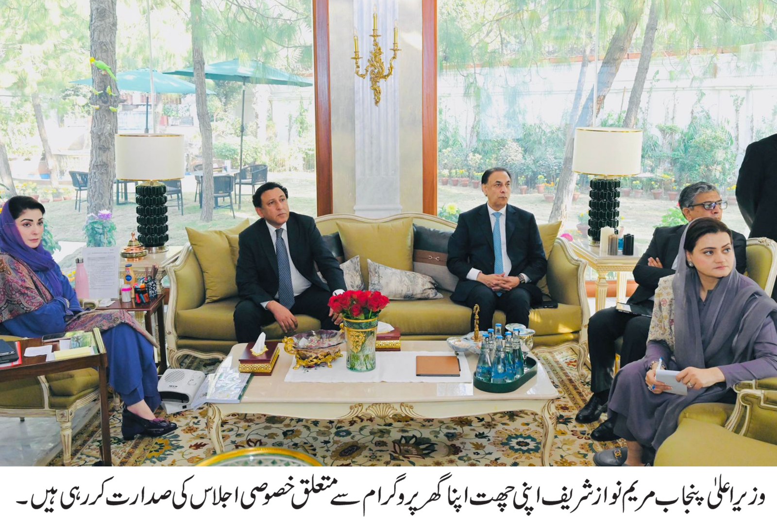 وزیر اعلیٰ پنجاب مریم نوازشریف کی زیر صدارت اپنی چھت…… اپنا گھر پروگرام کے حوالے سے خصوصی اجلاس منعقد ہوا جس میں اپنی چھت……اپنا گھر پروگرام کے پراجیکٹس پر پیش رفت کا بارے میں تفصیلی جائزہ لیا گیا۔ پنجاب میں بے گھر شہریوں کو مفت پلاٹ دینے کی سکیم کا جائزہ،سفارشات اورتجاویز پر غور کیا گیا۔ وزیراعلیٰ مریم نواز شریف نے صوبے بھر میں 3اور 5مرلے کی سرکاری ہاؤسنگ سکیموں کا تفصیلی جائزہ لینے کی ہدایت کر دی۔ اجلاس میں عوام کو فری پلاٹ دینے کے لئے ٹی او آرز طے کرنے کے لئے 8رکنی کمیٹی قائم کرنے کا فیصلہ کیا گیا۔اجلاس میں بتایا گیا کہ پنجاب کے22اضلاع میں 35سرکاری ہاؤسنگ سکیموں میں 2807پلاٹوں کی ڈویلپمنٹ کا کام مکمل کر لیا گیا ہے۔ وزیر اعلیٰ مریم نوازشریف نے 7اضلاع میں 9 سرکاری ہاؤسنگ سکیموں میں 1119پلاٹوں کی ڈویلپمنٹ کے عمل کو تیز کرنے کا حکم دیا۔ وزیراعلیٰ مریم نوازشریف نے پنجاب میں اپنی چھت، اپنا گھر سکیم کے تحت گھروں کی تعمیر کا ہدف پورا کرنے کا حکم دیا اور فروری تک صوبے بھر میں 20ہزار گھروں کی تعمیر کا ٹارگٹ دے دیا ہے۔ وزیر اعلیٰ مریم نوازشریف نے اس موقع پر واضح کر دیا کہ سالانہ ایک لاکھ گھروں کی تعمیر کا ہدف ہر صورت پورا کیا جائے۔ وزیر اعلیٰ مریم نوازشریف کو بریفنگ میں بتایا گیا کہ 9015 مکانوں کی تعمیر کے لئے 8ارب 20کروڑ روپے کے قرضے جاری کر دیئے گئے۔2050 افراد کو مکانات کی تعمیرات کیلئے قرض کی دوسری قسط بھی مل گئی۔اپنی چھت……اپنا گھر پروگرام کے تحت4841گھر زیر تکمیل ہیں۔بریفنگ میں مزید بتایا گیا کہ اپنی چھت،اپنا گھر پورٹل پروزٹ کرنے والے شہریوں کی تعداد7لاکھ28ہزارسے بڑھ گئی۔اپنی چھت……اپنا گھرپروگرام کیلئے تقریبا4لاکھ سے زائد درخواستیں مکمل دستاویزات کے ساتھ آگئیں۔74ہزار سے زائد ڈرافٹ ایپلی کیشن بھی اپنی چھت……اپنا گھر پورٹل میں جمع کرائے دی گئی جبکہ ان کے ساتھ درکار دستاویزات جمع کرانے کا عمل جاری ہے۔