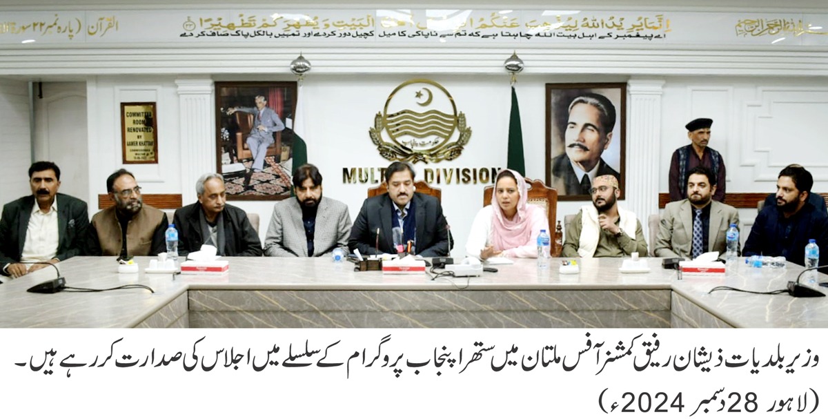 ستھرا پنجاب مہم میں آؤٹ سورسنگ کے حوالے سے ملتان ڈویژن بہترین پوزیشن پر ہے۔ ڈپٹی کمشنرز آؤٹ سورسنگ کے عمل کی براہ راست مانیٹرنگ کررہے ہیں۔ نئے صفائی نظام میں شہریوں کی ویسٹ کے حوالے سے شکایات کا ازالہ ترجیح ہے۔شہری و دیہی علاقوں میں یکساں صفائی نظام سے احساس محرومی کا خاتمہ ہوگا۔