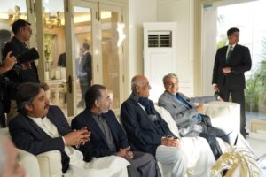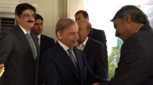 وزیر اعظم شہباز شریف دورہ کراچی کے موقع پر سندھ کے سینئر وزیر شرجیل انعام میمن کے گھر پہنچ گئے۔ سندھ کے سینئر وزیر اور صوبائی وزیر برائے اطلاعات ، ٹرانسپورٹ و ماس ٹرانزٹ شرجیل انعام میمن کے آمد کے موقع پر نائب وزیر اعظم اسحاق ڈار، وفاقی وزراء محمد اورنگزیب، مصدق ملک، عطا تارڑ بھی وزیر اعظم شہباز شریف کے ہمراہ تھے۔ سندھ کے وزیر اعلیٰ مراد علی شاہ اور گورنر سندھ کامران ٹسوری بھی وزیر اعظم کے ہمراہ سینئر وزیر شرجیل انعام میمن کے گھر تشریف لائے۔ اس موقع پر پیپلز پارٹی سینئر رہنما سید خورشید شاہ، سینیٹر نوید قمر، نثار احمد کھہڑو، اسپیکر سندھ اسمبلی سید اویس قادر شاہ، صوبائی وزیر سعید غنی، معاون خصوصی قاسم نوید قمر، ایم این اے کرنل (ر) اسد اسلم نیازی اور دیگر بھی موجود تھے۔