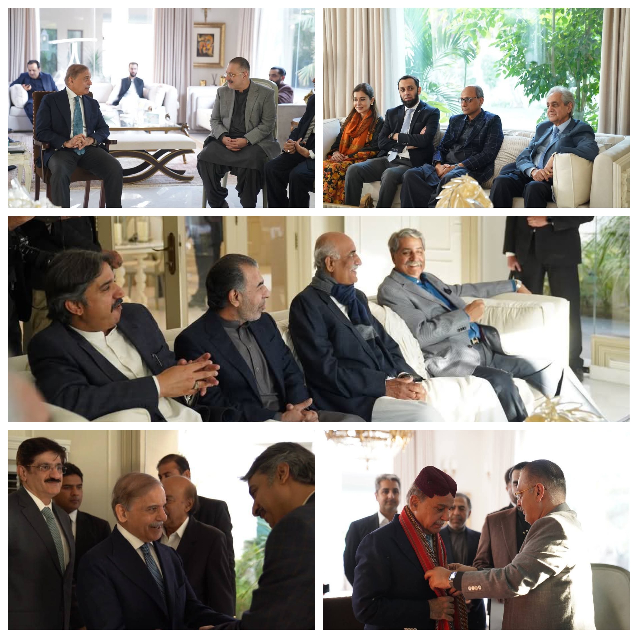 سینئر وزیر شرجیل انعام میمن اور ان کے صاحبزادے راول شرجیل میمن نے وزیر اعظم شہباز شریف کا گھر آمد پر گرمجوشی سے استقبال کیا۔ملاقات کے دوران وزیر اعظم شہباز شریف نے سینئر وزیر شرجیل انعام میمن کو پوتے کی مبارکباد دی۔ سینئر وزیر شرجیل انعام میمن نے میزبانی کا موقع دینے پر وزیر اعظم شہباز شریف کا شکریہ ادا کیا۔ خوشگوار ماحول میں ہونے والی ملاقات کے دوران ملکی و صوبائی صورتحال سمیت دیگر امور پر گفتگو کی گئی۔