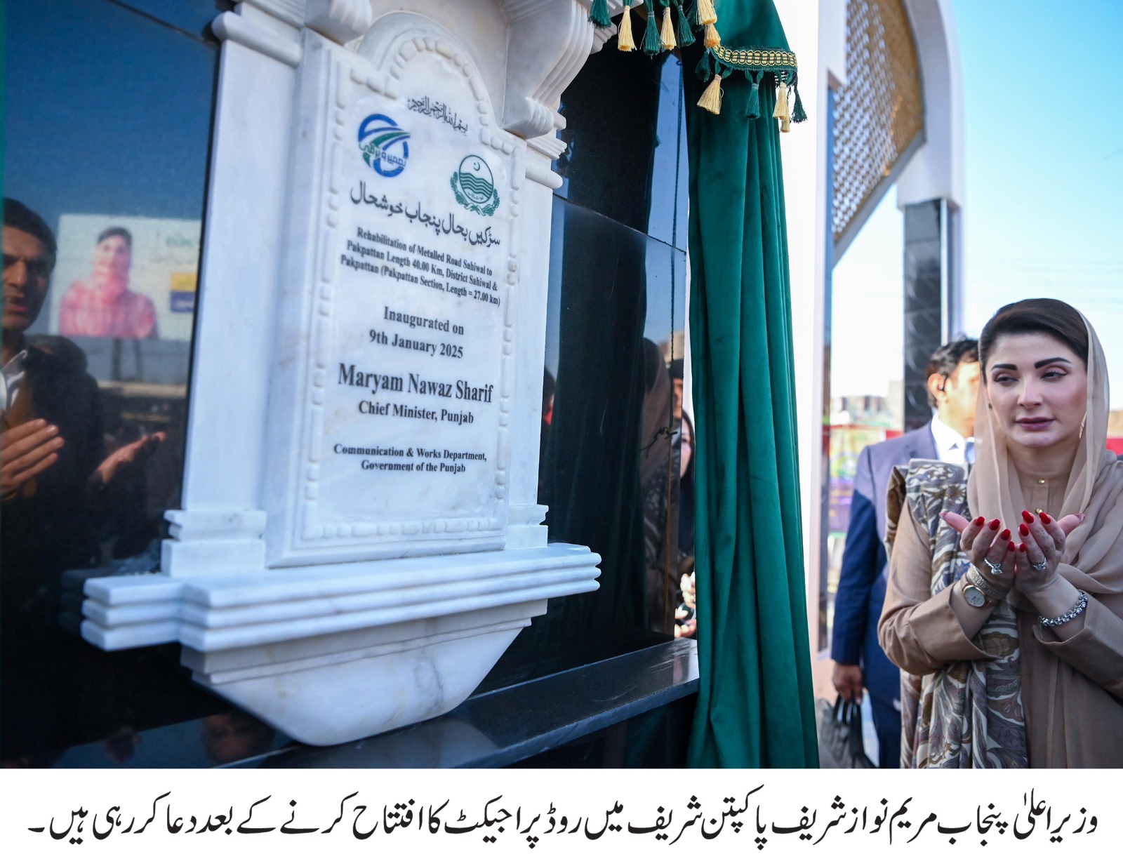 Madam Chief Minister said,”The construction of Pakpattan-Mahmoo Chowk road will benefit thousands of citizens for transportation to Bahawalnagar and Qabula.” She added,”The construction and rehabilitation of connecting roads of Pakpattan and other districts are in the final stages of completion.”