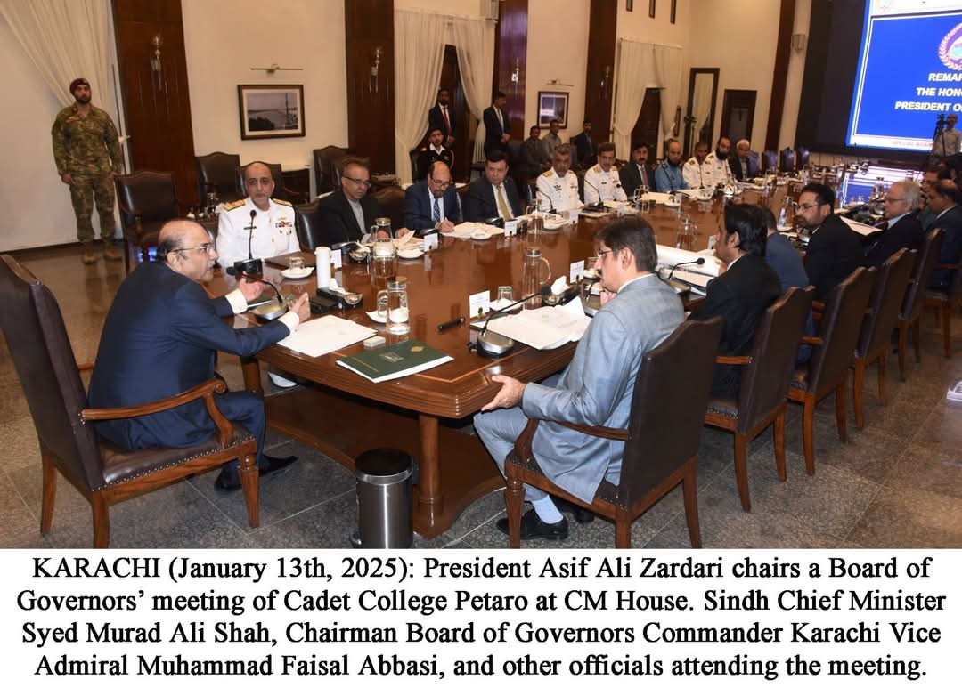 صدر آصف علی زرداری نے بورڈ آف گورنرز کے اجلاس کی صدارت کے دوران کیڈٹ کالج پیٹارو کی ترقی اور جدت کی منظوری دیتے ہوئے ادارے کو تعلیم اور کردار سازی کے حوالے سے پاکستان کا ایک اہم ادارہ برقرار رکھنے کے عزم کا اظہار کیا۔