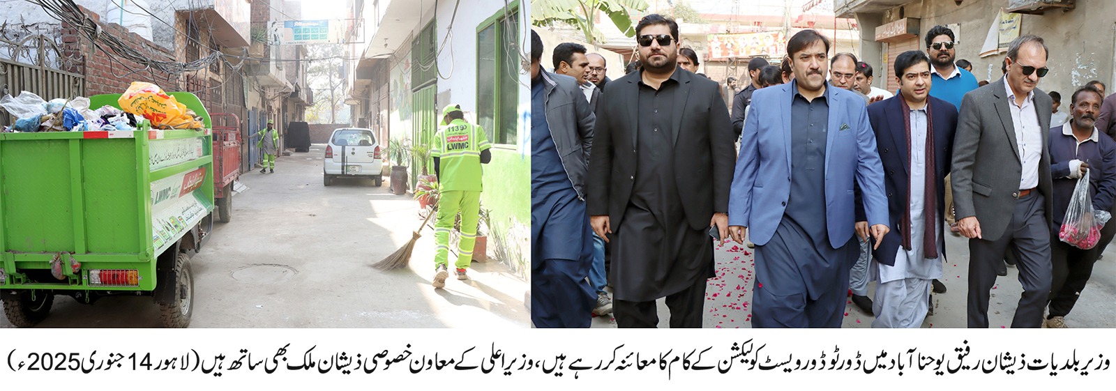 اس موقع پر وزیراعلی کے معاون خصوصی ذیشان ملک نے کہا کہ ڈور ٹو ڈور کولیکشن کا کام ان علاقوں سے شروع کیا گیا جہاں صفائی کی مجموعی صورتحال تسلی بخش نہیں۔ علاوہ ازیں دیہات میں پہلی بار صفائی کی سہولیات مہیا کی جا رہی ہیں۔ وزیراعلی مریم نواز کا پہلے روز سے ہی صفائی انتظامات بہتر بنانے پر فوکس ہے۔ ذیشان ملک نے زور دیا کہ کنٹریکٹرز کی نگرانی کا موثر میکانزم بنانا ہوگا تاکہ صفائی کا دیرپا اور موثر نظام جلد مستحکم ہوسکے۔