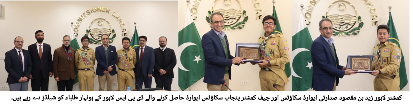 کمشنر لاہور زید بن مقصود نے صدارتی ایوارڈ سکاوٹس اور چیف کمشنر پنجاب سکاوٹس ایوارڈ حاصل کرنے والے ڈی پی ایس لاہور کے ہونہار طلباء سے ملاقات کی اور مبارکباد دی۔ ڈی پی ایس لاہور کے ایک طالب علم معیز اجمل کاکڑ کو نیشنل سکاوٹس میں بہترین کارکردگی اور نظم و ضبط پر صدارتی ایوارڈ ملا جبکہ محمد فرقان طاہر کو پنجاب میں بہترین کارکردگی و نظم و ضبط پر چیف کمشنر پنجاب ایوارڈ ملا۔