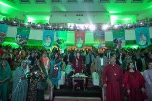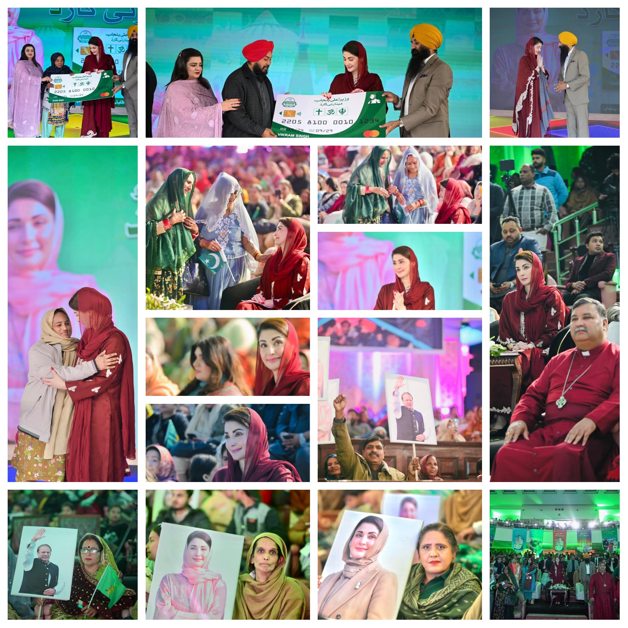 ”اقلیتیں۔۔۔۔۔۔ سر کاتاج”،مریم نواز شریف نے وعدہ سچ کر دکھایا۔وزیر اعلیٰ مریم نواز شریف نے مینارٹی کارڈ 50 سے 75 ہزار کرنے کا اعلان کیاہے۔وزیر اعلیٰ پنجاب مریم نواز شریف نے پاکستان کا پہلا ”چیف منسٹر مینارٹی کارڈ” لانچ کردیا۔ایوان اقبال کمپلیکس میں ہندو، سکھ اور کرسچن سمیت دیگر برادری کے مرد وخواتین نے شرکت کی۔تقریب کے شرکا نے پاکستان زندہ باد کے نعروں سے وزیر اعلیٰ مریم نواز کا خیر مقدم کی۔وزیر اعلیٰ مریم نواز شریف شرکا کے درمیان بیٹھ گئیں۔بشپ ندیم کامران اور سردار سرنجیت سنگھ، پنڈت لال نے دعائیں اور پراتھنا کیں۔وزیر اعلیٰ مریم نواز شریف نے چیف منسٹر مینارٹی کارڈ کی لانچنگ کردی۔