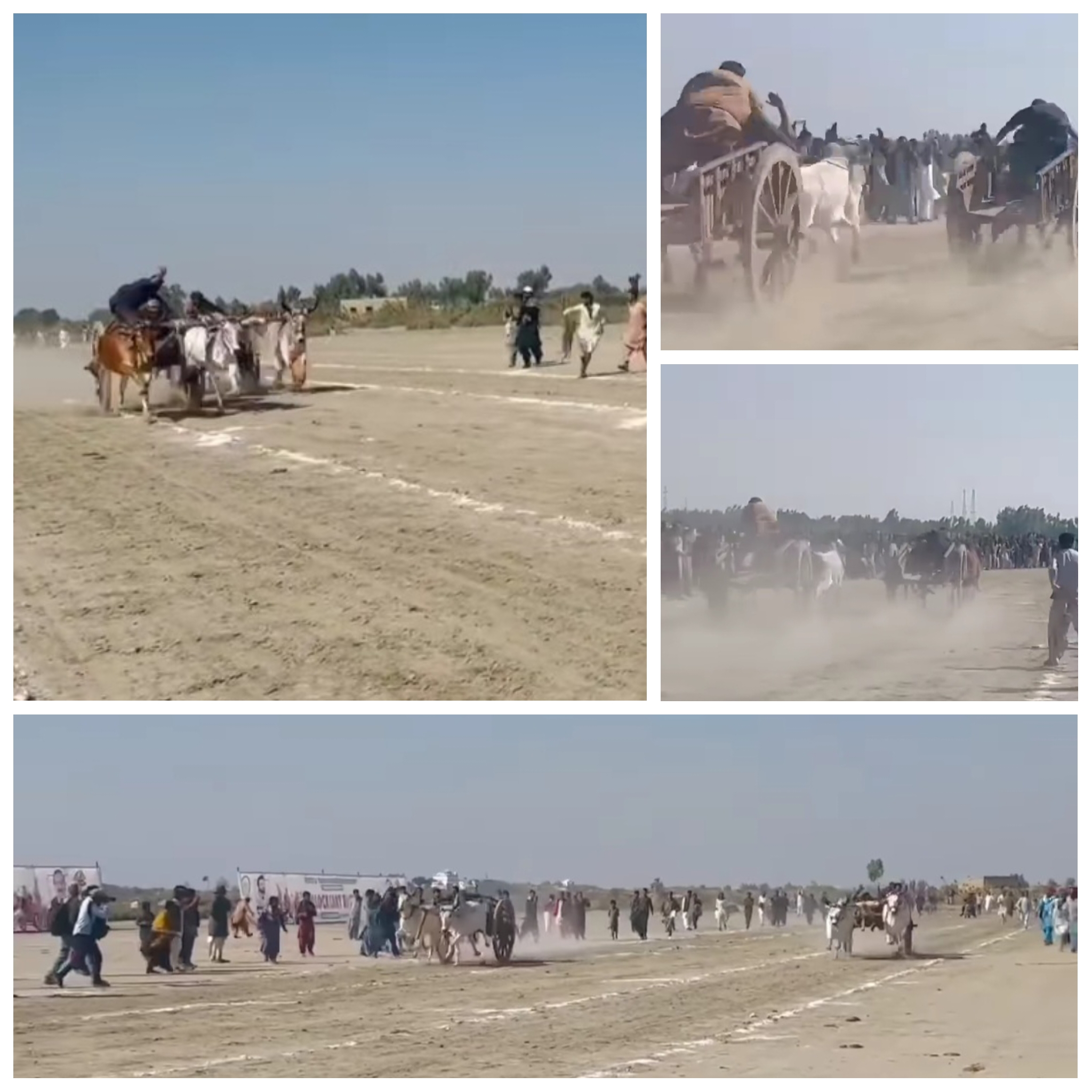 کراچی 25 جنوری۔ سندھ حکومت کے محکمہ کھیل کی جانب سے ٹھٹہ میں بیلوں کی دوڑ کا دلچسپ مقابلہ، 20 بیلوں کی جوڑیوں کو دوڑایا گیا،ٹھٹہ کے بیلوں نے پہلی پوزیشن اپنے نام کرلی.ٹھٹہ میں میں بیلوں کی روایتی دوڑ کا دلچسپ مقابلہ ہوا، جس میں ٹھٹہ اور بدین کے بیلوں کی 20 جوڑیوں نے دوڑ میں حصہ لیا، جس میں ٹھٹہ کے علاقے شاہ شیرازی روڈ پر سندھ حکومت کے محکمہ کھیل کی جانب سے بیل دوڑ کے روایتی دلچسپ مقابلے منعقد ہوئے۔ بیل دوڑ مقابلے ٹھٹہ اور بدین سے لائے گئے 20 بیلوں کی جوڑیوں کو دوڑایا گیا۔ اس دوران علاقے میں جشن کا سماں تھا، لوگ ڈھول کی تھاپ پر رقص کرتے رہے، جبکہ بیل دوڑ مقابلوں میں ٹھٹہ کی دولھہ دریا بیلوں نے پہلی پوزیشن اپنے نام کرلی اور بدین کے بیل جوڑی نے دوسری حاصل کی، اس کے ساتھ ہی ٹھٹہ کے بیلوں کے مالکان میں ونر کی ٹرافی اور 50 ہزار انعام، جبکہ دوسری پوزیشن حاصل کرنے والوں میں 30 ہزار روپے اور ٹرافی تقسیم کی گئی. وزیر اوقاف و مذہبی امور سید ریاض حسین شاہ شیرازی نے بیلوں کی دوڑ کا مقابلہ جیتنے والوں میں انعامات تقسیم کرنے کے دوران میڈیا سے گفتگو کرتے ہوئے کہا کہ سندھ حکومت کھیلوں کو پروموٹ کررہی ہے، بیلوں کی دوڑ کا مقابلہ سندھ کی ثقافت کا پرانا حصہ ہے، امید ہے کہ محکمہ کھیل سندھ ایسے کھیل ہر ڈسٹرکٹ میں منعقد کرائیں گے، ہماری کوشش ہے کہ ٹھٹہ کے اسپورٹس کامپلیکس کو اپ گریڈ کروائیں تاکہ یہاں کے نوجوانوں کو مزید سہولتیں مل سکیں. سیکریٹری کھیل عبدالعلیم لاشاری کا کہنا تھا کہ سندھ حکومت بیلوں کے دوڑ کے مقابلہ ڈسٹرکٹ سطح پر کروائے گی، اس کے ساتھ ساتھ بیلوں کی دیکھ بھال کرنے کے لئے محکمہ کھیل اور محکمہ لائیو اسٹاک ہر ممکن مدد فراہم کریگا.تقریب میں ڈسٹرکٹ ٹھٹہ کے فٹبال کےصدرتنویرشاہ شیرازی، ضلع ٹھٹہ کے اسپورٹس افسر علی اظہر بروہی، اسماعیل شاہ، فرید علی، حاجرہ نواب، اے ڈی گوپانگ اور دیگر بھی موجود تھے۔