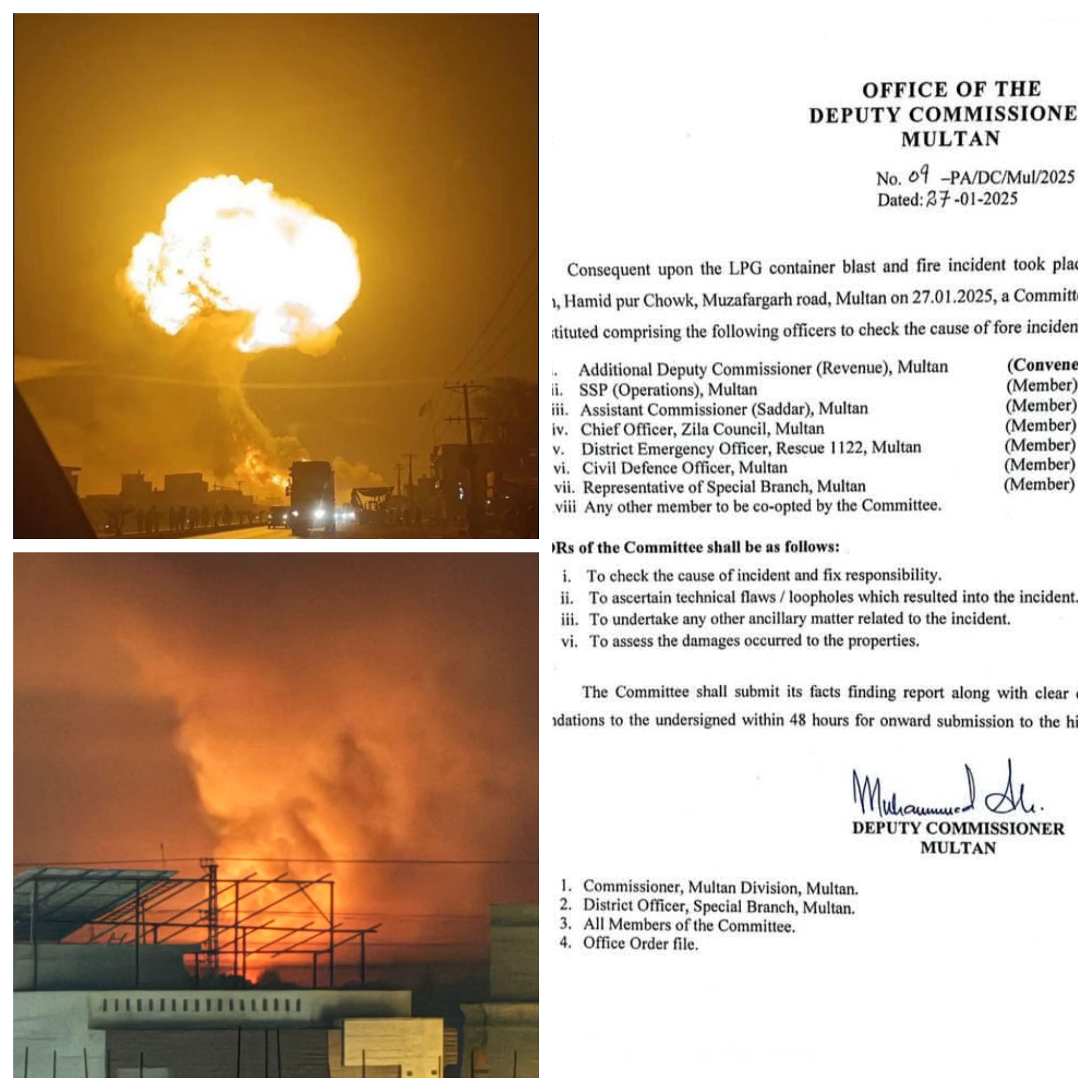ضلعی انتظامیہ کا مظفرگڑھ روڈ فہد ٹاؤن میں کنٹینر پھٹنے کی مکمل تحقیقات کا فیصلہ