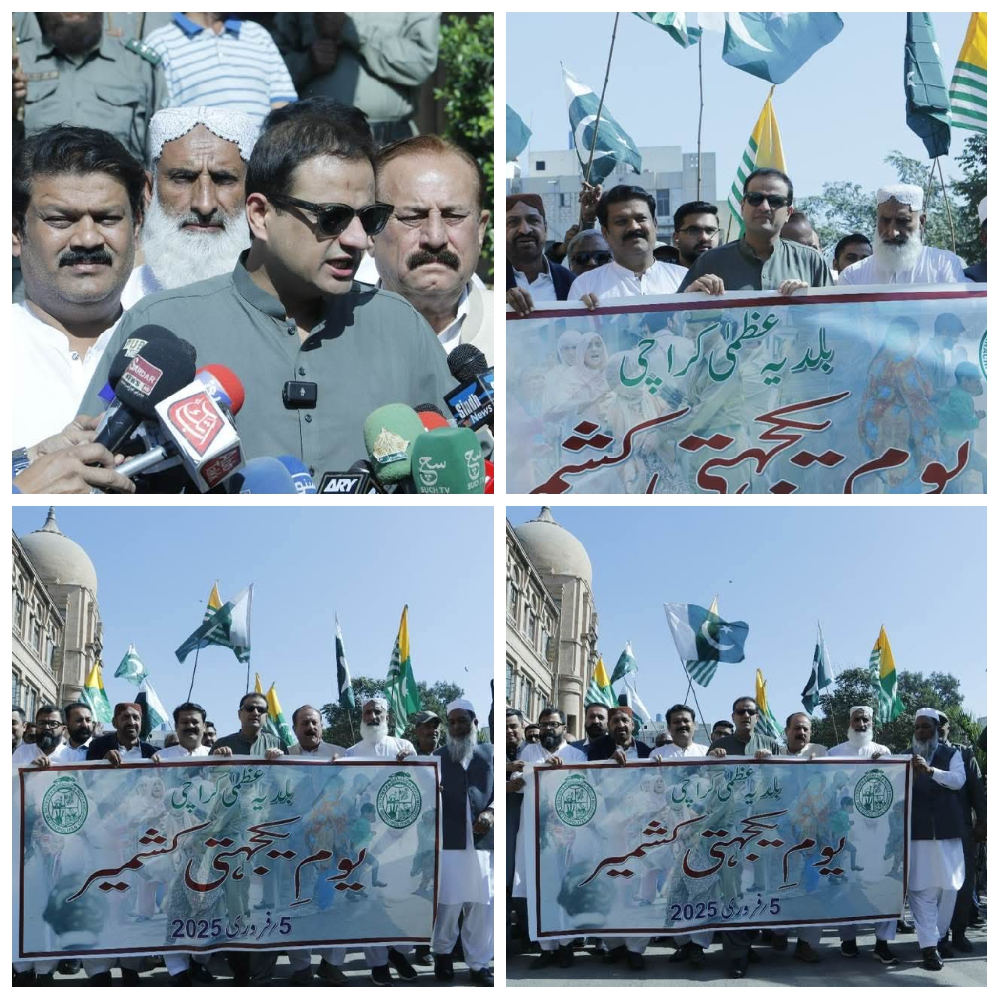 میئر کراچی بیرسٹر مرتضیٰ وہاب کی قیادت میں بلدیہ عظمیٰ کراچی کے زیر انتظام یوم یکجہتی کشمیر ریلی کا انعقاد کیا گیا ۔ریلی کے موقع پر گفتگو کرتے ہوئے میئرکراچی مرتضٰی وہاب نے کہا کہ