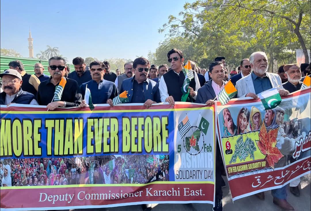 یوم یکجہتی کشمیر کے سلسلے میں کشمیری عوام سے اظہارِ یکجہتی، ریلیاں، تقاریب اور اجتماعات کا انعقاد کرتے ہوۓ اس عزم کا اظہار کیا گیا ہے کہ پاکستانی عوام کشمیریوں کے حق خود ارادیت کی حمایت کرتا اور بھارتی تسلط کی مخالفت کرتا رہے گا۔ کراچی میں یوم یکجہتی کشمیر کے حوالے سے ہونے والی ریلی اور بعد از منعقدہ مرکزی تقریب وزیر تعلیم و ترقی معدنیات سندھ سید سردار علی شاہ نے شرکت کی اور کہا کہ “جاگرافیائی حقائق کے تحت کشمیر پاکستان کا حصہ ہے، سالوں کے جبر اور لالچی ہتھکنڈوں کے باوجود بھارت آج تک کشمیریوں کی حمایت حاصل نہیں کر سکا کیوں کہ وہاں کے عوام بھارتی تسلط کو ماننے سے انکار کرتے ہوۓ آ رہے ہیں”، اس موقع پر منعقدہ ریلی میں چیف سیکریٹری آصف حیدر شاہ، وزیر اعلیٰ سندھ کے معاون خصوصی نجمی عالم، آزاد کشمیر سے آئے ہوئے حریت رہنما سید محمد نسیم یوسف بخاری، کمشنر کراچی، سیاسی رہنماؤں، سول سوسائٹی کے نمائندوں، سماجی شخصیات، طلبہ و طالبات اور عوام کی بڑی تعداد نے شرکت کی۔ ریلی کے آغاز میں دو منٹ کی خاموشی اختیار کی گئی، ریلی کے شرکاء نے ہاتھوں میں کشمیری پرچم اور یکجہتی کے بینرز اٹھا رکھے تھے جن پر “کشمیر بنے گا پاکستان” اور “ہم کشمیریوں کے ساتھ ہیں” جیسے نعرے درج تھے۔ ریلی کے اختتام پر خطاب کرتے ہوئے وزیر تعلیم سندھ سید سردار علی شاہ نے نے کہا کہ “پاکستان کشمیری عوام کے حقِ خودارادیت کی حمایت جاری رکھے گا اور ہر فورم پر بھارتی مظالم کو بے نقاب کرتا رہے گا۔” انہوں نے کہا کہ “کشمیر کے ساتھ اظہار یکجہتی کے لیے آج کے دن کی بنیاد پیپلز پارٹی نے رکھی اور پاکستانی عوام ہر سال مظلوموں کے ساتھ اپنی حمایت کی تجدید کرتےہیں۔“ صوبائی وزیر سید سردار علی شاہ نے مزید کہا کہ “قائد عوام شہید ذوالفقار علی بھٹو نے وزیر خارجہ بننے سے پہلے دور طالب علمی میں قائد اعظم کو خط لکھ کر کشمیر کے حوالے سے اس وقت کے صوبہ سرحد کے وزیر اعلیٰ کی انڈیا کی حمایت پر اپنے تحفظات کا اظہار کیا تھا، انہیں زندگی میں جب بھی موقع ملا انہوں نے کشمیر کی کبھی بھی حمایت نہیں چھوڑی” صوبائی وزیر نے کہا کہ بھارت بھول چکا ہے کہ جبر سے وہ کبھی بھی کشمیر حاصل نہیں کرسکتا، اس موقع پر ر اپنے خطاب میں چیف سیکریٹری سندھ آصف حیدر شاہ نے کہا کہ پاکستانی عوام ہر سطح پر کشمیریوں کی سفارتی اور اخلاقی حمایت جاری رکھے گی، “ہم کشمیریوں کے ساتھ اظہار یکجہتی ہر حوالے سے تجدید کرتے ہیں۔ آزاد کشمیر سے آئے ہوئے حریت رہنما سید محمد نسیم یوسف بخاری نے اپنے خطاب کے دوران کہا کہ “ریاست جموں کشمیر کا پاکستان کے ساتھ رشتہ کلمہ و قائد اعظم کے فرمان کی بنیاد پر ہے، لوگوں نے مرنا پسند کیا پر انڈیا کو کبھی تسلیم نہیں کیا، انہوں نے مزید کہا کہ چھ لاکھ کشمیری جان دے چکے ہیں، انڈیا نہ طاقت نہ لالچ کے بنیاد پر کشمیر حاصل کر سکا ہے نہ کر سکے گا۔” اس موقع پر شہداء کو خراج عقید پیش کیا گیا، جبکہ خصوصی دعائیں کا اہتمام کرتے ہوۓ شہداء کی درجات کی بلندی اور کشمیر کی آزادی کی دعا کی گئی۔