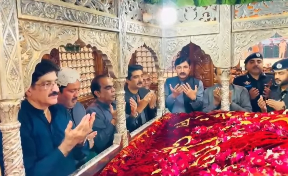 وزیراعلیٰ سندھ سید مراد علی شاہ نے آج سیہون شریف میں حضرت لعل شہباز قلندرؒ کے مزار پر حاضری دی، چادر چڑھائی اور فاتحہ خوانی کی۔ اس موقع پر انہوں نے دعا کی کہ اللہ تعالیٰ سندھ اور پاکستان کو ہمیشہ سرسبز، شاد اور آباد رکھے۔ انہوں نے کہا کہ سندھ صوفیوں اور ولیوں کی سرزمین ہے اور حضرت لعل شہباز قلندرؒ کی درگاہ امن اور روحانی روشنی کا مرکز ہے۔ وزیراعلیٰ سندھ نے حضرت لعل شہباز قلندرؒ کے 773ویں عرس کی اختتامی تقریب میں شرکت کی۔ اس موقع پر انہوں نے کہا کہ حضرت لعل شہباز قلندرؒ کا پیغام محبت، امن اور رواداری پر مبنی ہے اور سندھ حکومت صوفی روایتوں کے تحفظ کے لیے پرعزم ہے۔ انہوں نے زائرین کی خدمت، سکیورٹی اور سہولیات کی فراہمی کو اپنی اولین ترجیح قرار دیا۔ وزیراعلیٰ کے ہمراہ صوبائی وزراء ریاض شاہ شیرازی، ذوالفقار علی شاہ، مکیش کمار چاولہ اور دیگر موجود تھے۔ سیہون میں صحافیوں سے گفتگو کرتے ہوئے وزیراعلیٰ سندھ نے کہا کہ سیہون میں انٹرنیشنل میچز کا انعقاد ممکن ہونا چاہیے مگر وسائل محدود ہیں۔ انہوں نے مزید کہا کہ پاکستان کرکٹ بورڈ (پی سی بی) نے نیاز اسٹیڈیم حیدرآباد میں انٹرنیشنل میچز کے انعقاد کے لیے حامی بھر لی ہے اور جلد اسے عالمی معیار کا بنایا جائے گا۔ کرپشن کے حوالے سے سوال پر وزیراعلیٰ سندھ نے واضح کیا کہ کرپشن کسی صورت قابل قبول نہیں۔ ٹریفک حادثات سے متعلق بات کرتے ہوئے انہوں نے کہا کہ حکومت اس معاملے پر سخت کارروائی کر رہی ہے، اور عوام کی جان کی حفاظت حکومت کی اولین ترجیح ہے۔ سیہون-جامشورو سڑک کی تعمیر میں تاخیر پر بات کرتے ہوئے انہوں نے کہا کہ یہ منصوبہ نیشنل ہائی وے اتھارٹی (NHA) کے تحت تھا، جس کی تکمیل کئی سالوں سے نہیں ہوئی، جبکہ سندھ حکومت نے 2017ء میں اس کے لیے 7 ارب روپے دیے تھے۔