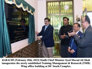 تقریب کے آغاز میں وزیر اعلیٰ نے ٹریننگ مینجمنٹ اینڈ ریسرچ ونگ کے دفتر کی نئی عمارت کا افتتاح بھی کیا جس میں جدید ترین کلاس رومز اور متعلقہ سہولیات موجود ہیں۔ انہوں نے چیف سیکریٹری آصف حیدر شاہ کو اس جگہ کی فراہمی پر سراہا اور ٹریننگ مینجمنٹ اینڈ ریسرچ ونگ پر زور دیا کہ وہ سندھ میں سول سرونٹس کی بڑھتی ہوئی تربیتی ضروریات کو پورا کرنے کے لیے ایک جدید سول سروسز اکیڈمی کے قیام کے لیے مزید اقدامات کرے۔