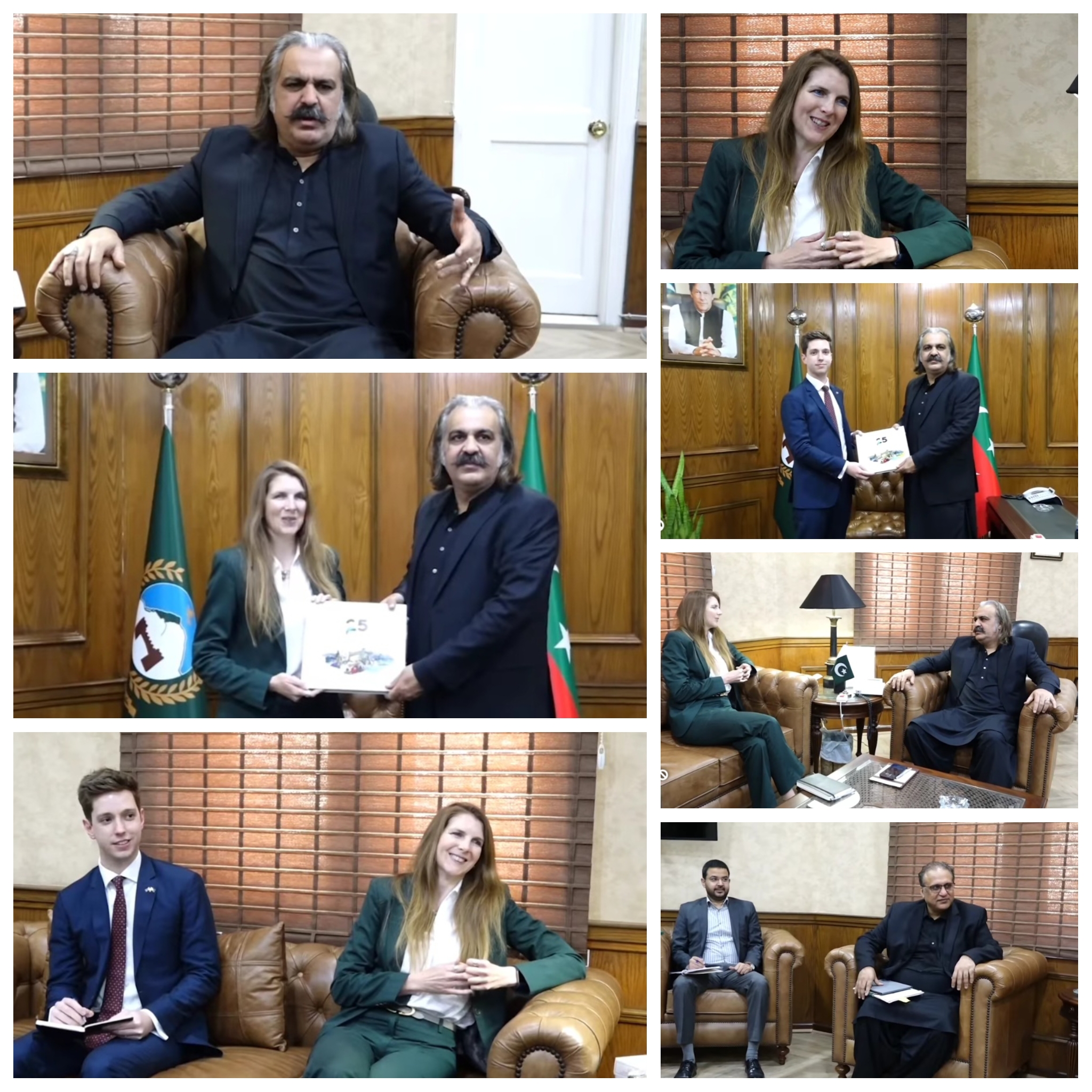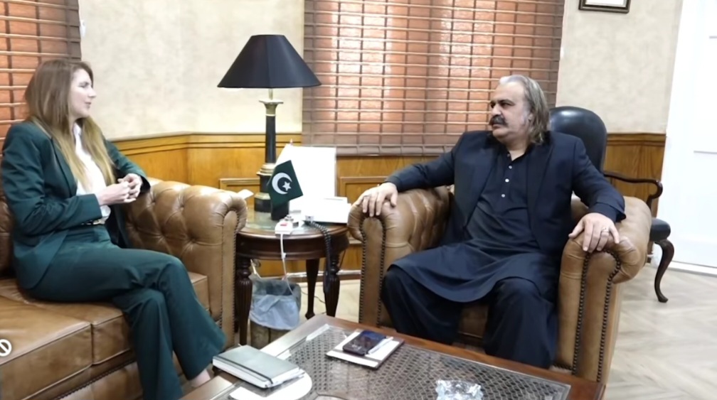 وزیر اعلی خیبر پختونخوا علی امین خان گنڈاپور سے پاکستان میں تعینات برٹش ہائی کمشنر جین میرئیٹ نے ملاقات کی۔ ایڈیشنل چیف سیکرٹری منصوبہ بندی اور دیگر متعلقہ حکام بھی ملاقات میں موجود تھے۔ باہمی دلچسپی کے امور خصوصا خطے میں امن و امان کی صورتحال اور متعلقہ امور پر گفتگو کی گئی ۔