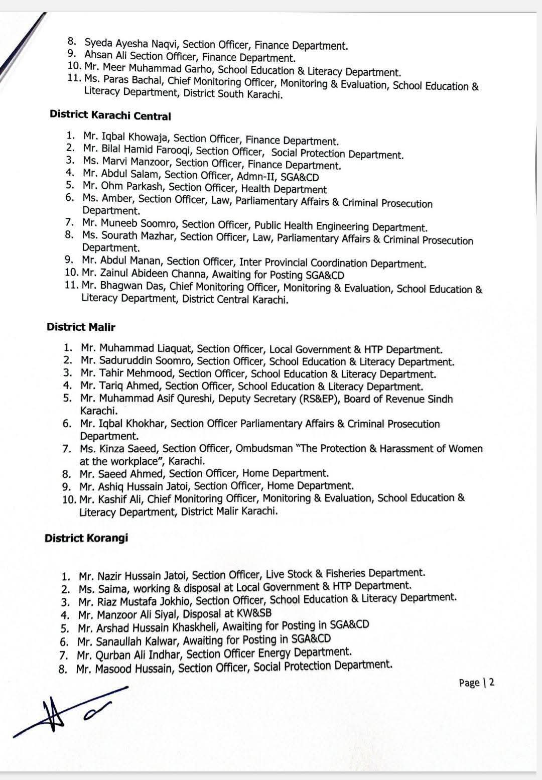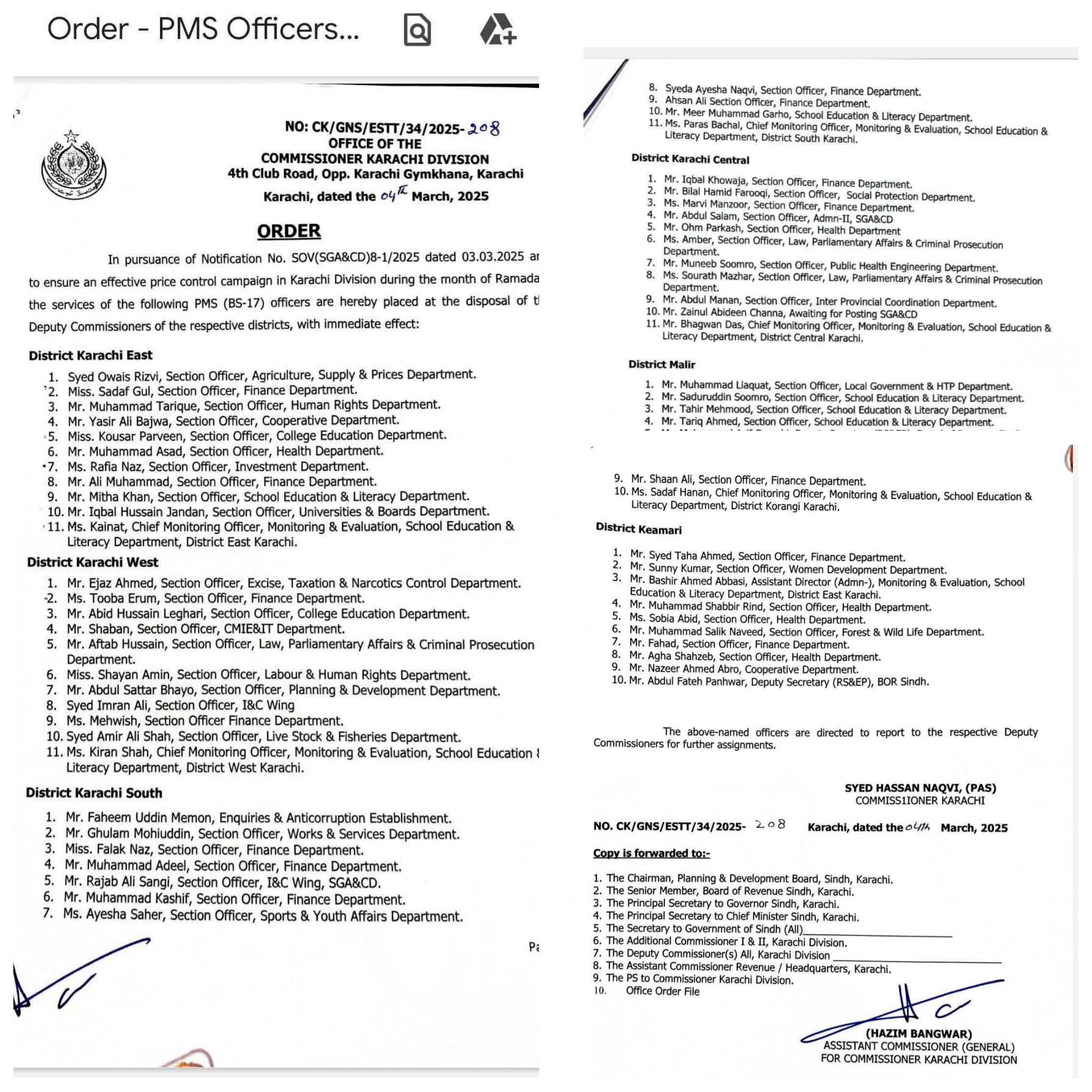 کمشنر کراچی سید حسن نقوی کی طرف سے افسران کا باقاعدہ نوٹیفکیشن جاری کر دیا گیا ہے۔تمام افسران گریڈ 17 میں مختلف محکموں میں کام کر رہے ہیں۔