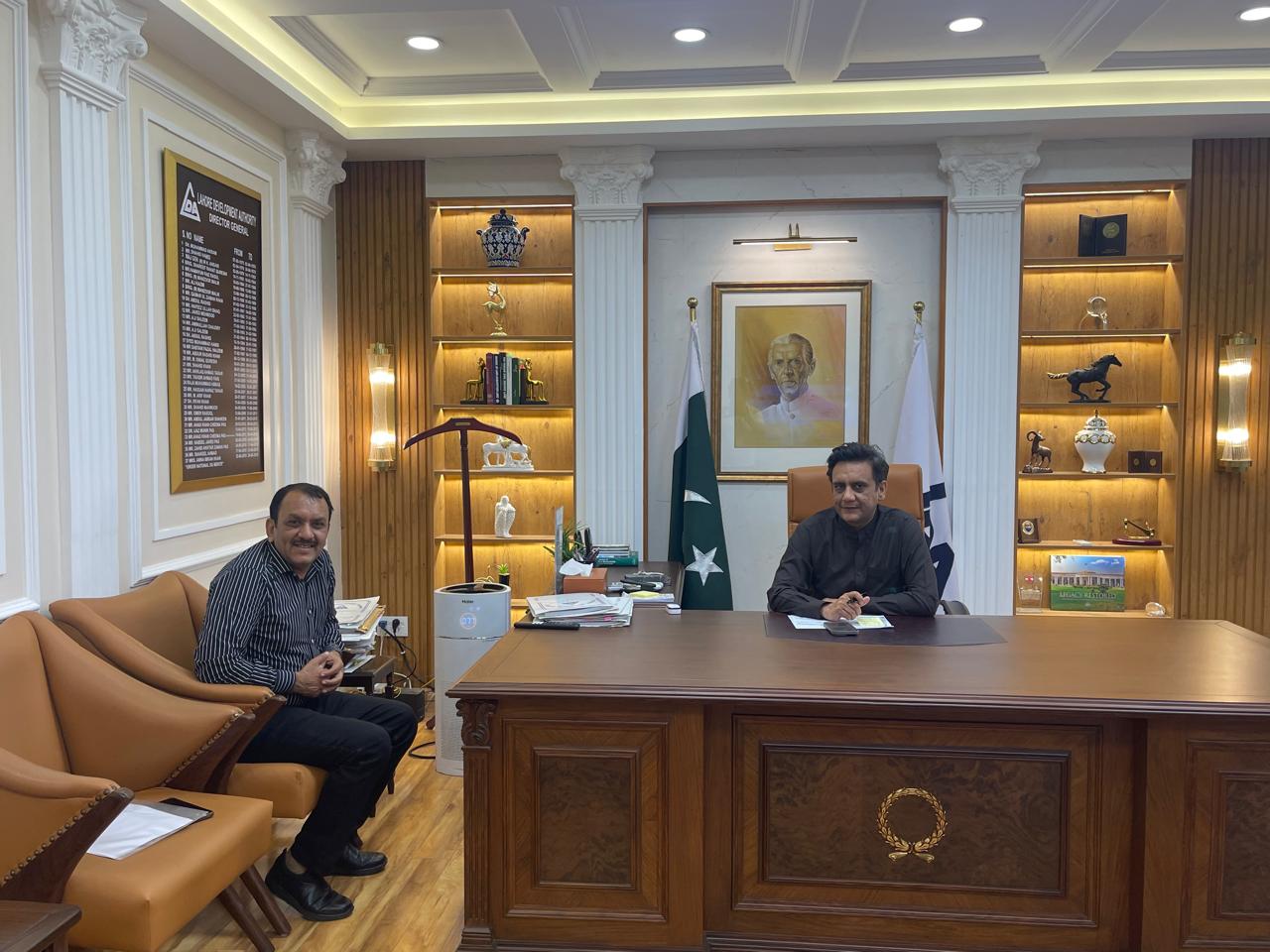 ڈی جی ایل ڈی اے طاہر فاروق سے سینئر نائب صدر لاہور پریس کلب افضال طالب کی ملاقات ہوئی۔سینئر نائب صدر افضال طالب نے صحافی کالونی ایف بلاک میں بجلی کی تنصیب کے کاموں کا آغاز کرانے پر ڈی جی ایل ڈی اے طاہر فاروق کا شکریہ ادا کیا۔ملاقات میں صحافی کالونی بالخصوص ایف بلاک کے ترقیاتی کاموں اور دیگر مسائل پر گفتگو کی گئی۔ڈی جی ایل ڈی اے طاہر فاروق نے اس موقع پر کہا کہ لاہور پریس کلب اور صحافی بھائیوں کی خدمات قابل قدر ہیں۔صحافی کالونی اور صحافی بھائیوں کے مسائل ترجیحی بنیادوں پر حل کیے جائیں گے۔ ڈی جی ایل ڈی اے طاہر فاروق نے کہا کہ ایف بلاک میں بجلی کی تنصیب کے لیے ٹرانسفارمر، کھمبے اور دیگر میٹریل پہنچ گیا ہے۔ڈی جی ایل ڈی اے نے ایف بلاک میں بجلی کے کاموں کو جلد از جلد مکمل کرنے کی یقین دہانی کرائی۔