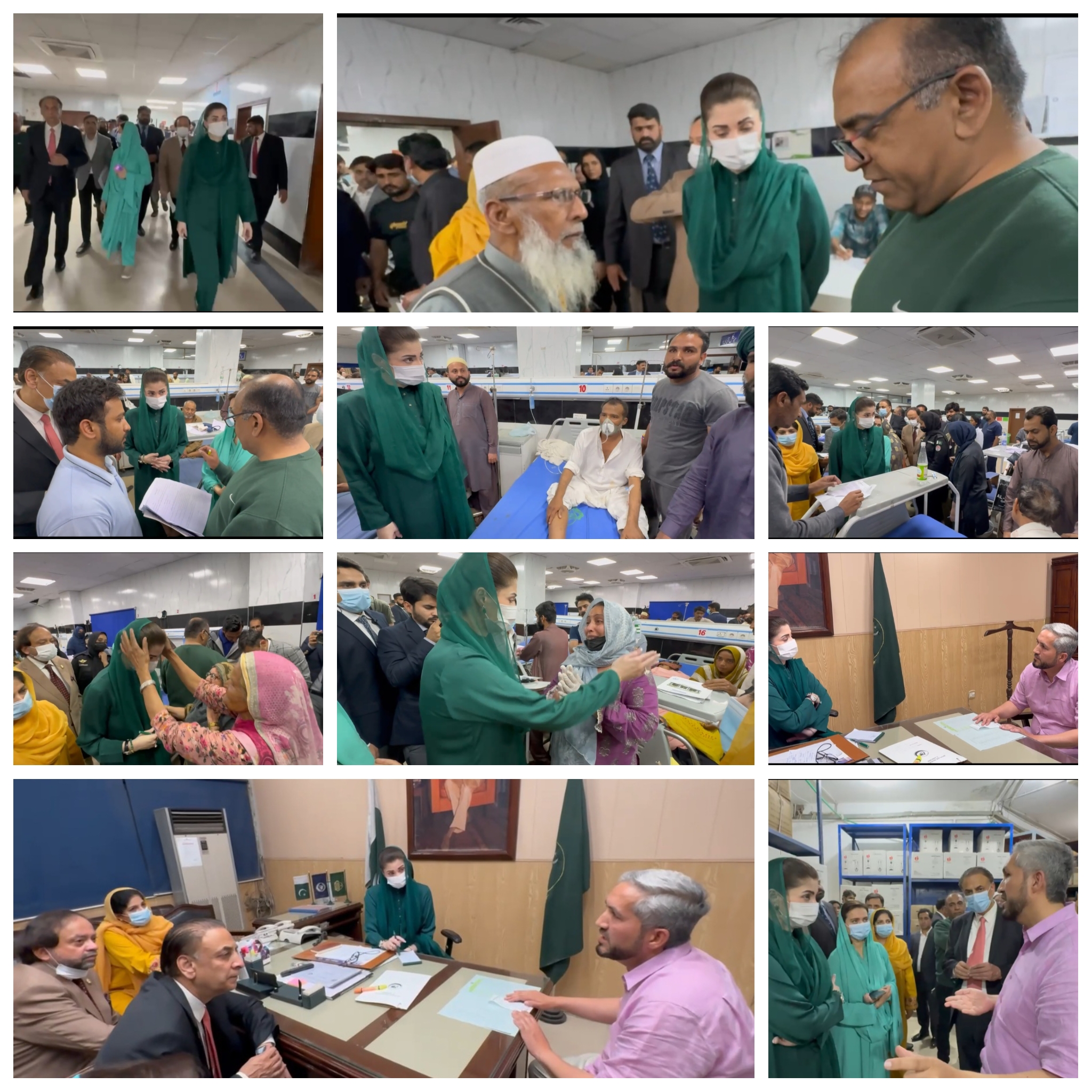 وزیراعلٰی مریم نواز شریف نے جناح ہسپتال ایمرجنسی وارڈ کا بھی دورہ کیا۔وزیراعلٰی مریم نواز شریف نے ایمرجنسی میں مریضوں اور تیمارداروں سے بات چیت کی۔وزیراعلٰی مریم نواز شریف نے مریضوں کو ملنے والے نسخے اور میڈیسن چیک کیں۔بزرگ مریضہ نے وزیر اعلٰی مریم نواز شریف کو ڈھیروں دعائیں دیں۔وزیراعلٰی مریم نواز شریف نے خاتون مریضہ کو گلے لگا کر تسلی دی۔وزیراعلٰی مریم نواز شریف نے