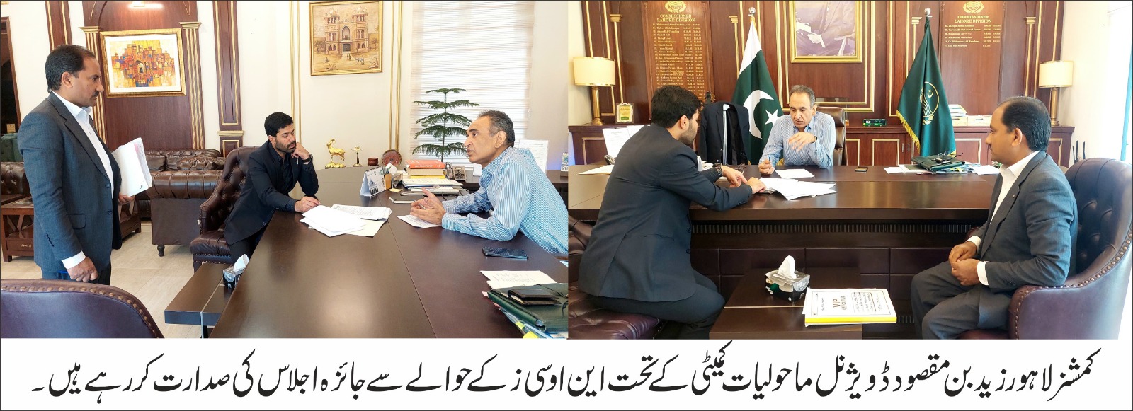 کمشنر لاہور ڈویژن زید بن مقصود کی زیر صدارت ڈویژنل ماحولیات کمیٹی کے تحت این او سیز اجراء کا اجلاس ہوا۔این او سی ز کیلئے تمام درخواستوں پر کمیٹی نے کمشنر لاہور ڈویژن کو بریفنگ دی گئی اور تمام فائلوں کا ریکارڈ پیش کیا گیا۔ کمشنر لاہور ڈویژن زید بن مقصود سے منظوری کیلیے ماحولیاتی کمیٹی نے پوری ڈویژن کے 13 کیسز پیش کیے گئے جس میں سے 12 کیسز کو ماحولیاتی این او سیز جاری کرنے کی منظوری دی گئی جبکہ ایک کیس ایل ڈی اے این او سی نہ ہونے پر ملتوی کیا۔