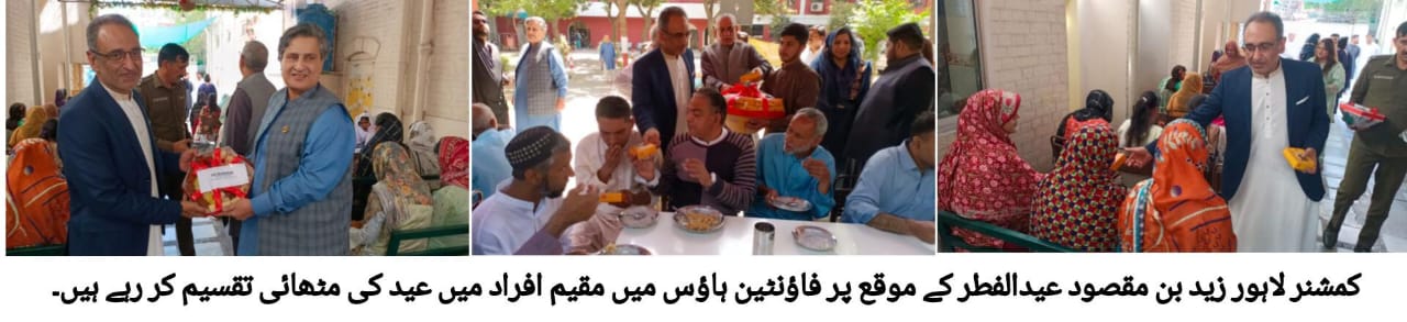 کمشنر لاہور زید بن مقصود نے عید الفطر کے موقع پر محبتوں و خوشیوں کا پیغام لیکر فاؤنٹین ہاؤس کا دورہ کیا۔ منتظمین فاؤنٹین ہاوس نے کمشنر لاہور کو خوش آمدید کہا۔ کمشنر لاہور نے فاؤنٹین ہاوس میں مقیم افراد سے ملاقات کی، عید کی مبارکباد دی اور تحائف و مٹھائی تقسیم کی۔