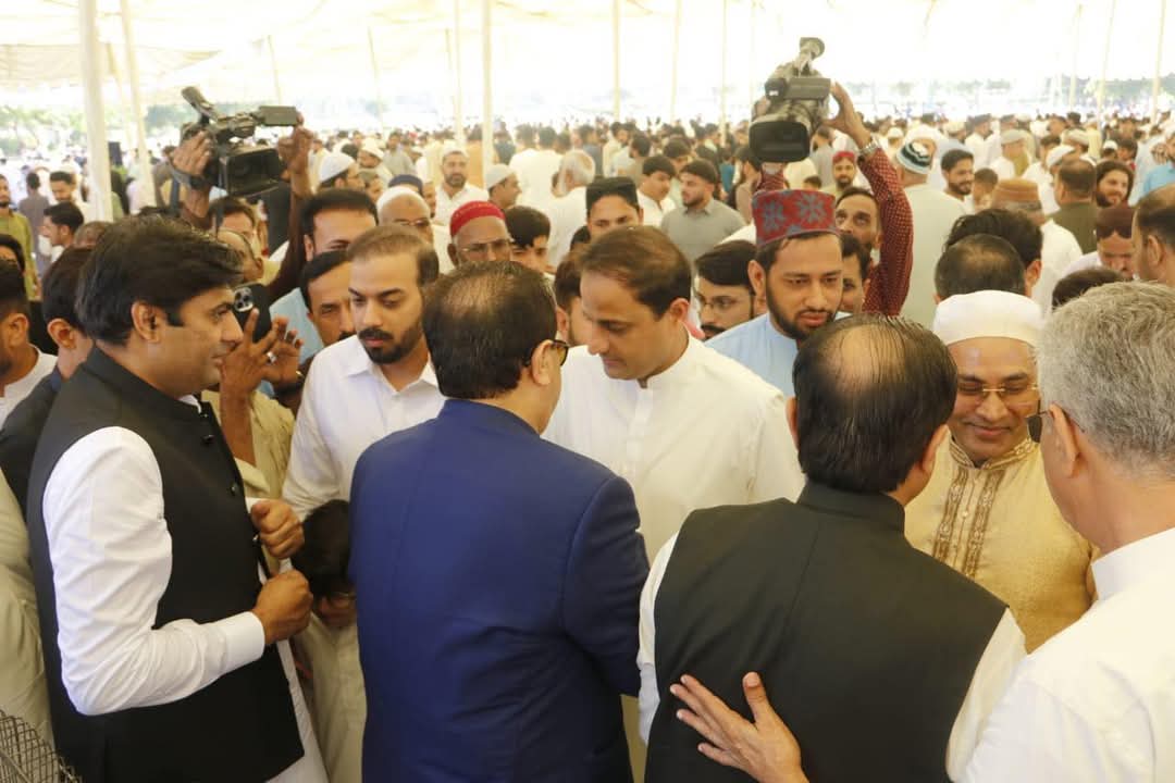 میئر کراچی بیرسٹر مرتضیٰ وہاب اور ڈپٹی میئر سلمان مراد نے پولو گراؤنڈ میں عید کی نماز ادا کی۔