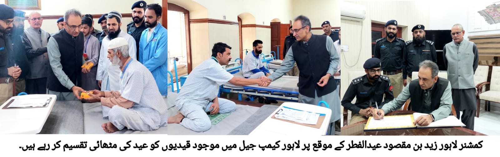 کمشنر لاہور نے خصوصی طور پر جووینائیل حوالات میں بچوں کے ساتھ عید منائی اور مٹھائی تقسیم کی۔ انہوں نے جیل ہسپتال کا بھی دورہ کیا، داخل قیدیوں کی عیادت کی اور ان کو عید کی مٹھائی تقسیم کی۔ جیل سپرنٹنڈنٹ نے کمشنر لاہور کو قیدیوں کی جیل میں تربیت و تدریس کی سہولیات پر بریفنگ دی۔اس موقع پر کمشنر لاہور نے عید پر اپنی ڈیوٹی سر انجام دینے میں مصروف جیل افسران و اہلکاروں کو عید کی مبارکباد دی، بہترین انتظامات پر جیل انتظامیہ کو سراہا اور جیل بک پر اپنے تاثرات قلمبند کیے۔