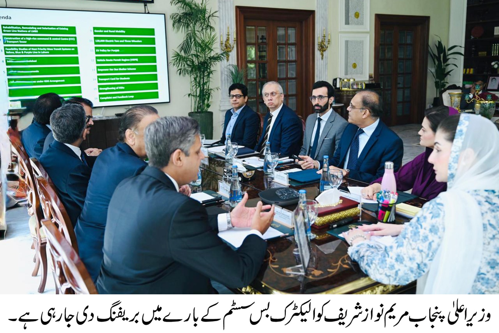 وزیراعلیٰ پنجاب مریم نوازشریف نے صوبے کے مختلف شہروں کے لئے 1500 الیکٹرک بسیں چلانے کے پراجیکٹ کی اصولی منظوری دے دی ہے۔پنجاب کے دور دراز بڑے شہروں میں مرحلہ وار الیکٹرک بسوں پر مشتمل ٹرانسپورٹ سسٹم شروع کیا جائے گا۔ وزیراعلیٰ مریم نوازشریف کی زیر صدارت ٹرانسپورٹ ڈیپارٹمنٹ سے متعلق خصوصی اجلاس منعقد ہوا جس میں ٹرانسپورٹ ڈیپارٹمنٹ کے پراجیکٹس پرتفصیلی بریفنگ دی گئی۔اجلاس میں سرگودھا،شیخوپورہ، سیالکوٹ، گجرات، رحیم یار خان، ڈیرہ غازی خان سمیت چھ اضلاع میں نئے ٹرانسپورٹ سسٹم لانے پر اتفاق کیا گیا۔ وزیراعلیٰ مریم نوازشریف نے پہلے مرحلے میں 380الیکٹرک بسوں کی خریداری کا عمل جلد از جلد مکمل کرنے کا حکم دیا۔ پہلے مرحلے میں لاہور اور گوجرانوالہ میں الیکٹرک بسیں چلائی جائیں گی۔ وزیر اعلیٰ مریم نواز شریف نے لاہور، گوجرانوالہ الیکٹرک بس سروس کے لئے اگلے جون تک کی ڈیڈلائن مقرر کر دی۔ اجلاس میں فیصل آباد میں اورنج اور ریڈ بس سروس شروع کرنے کا اصولی فیصلہ کیا گیا۔ سمندری روڈ تا سرگودھا روڈ ریڈ بس سروس اور جڑانوالہ تا جھنگ روڈ اورنج بس سروس شروع کی جائے گی۔ وزیر اعلیٰ مریم نواز شریف نے فیصل آباد اور گوجرانوالہ میں الیکٹرک بس کے ٹریک کی فوری تعمیر کے لئے پلان طلب کر لیا۔وزیراعلیٰ مریم نوازشریف نے لاہور میں یلیو لائن الیکٹرک بس کے ٹریک کی پلاننگ کے لئے 15روز کی مہلت دے دی۔ وزیراعلیٰ مریم نوازشریف نے الیکٹرک بسوں کے چارجنگ سٹیشن قائم کرنے پلان بھی طلب کر لیا۔ وزیراعلیٰ مریم نوازشریف نے لاہور میں جدید ترین ٹرانسپورٹ ٹاور کمانڈ اینڈ کنٹرول سنٹر کی منظوری بھی دی۔ وزیراعلیٰ مریم نوازشریف نے کہا کہ سب کی وزیر اعلیٰ ہوں، لاہور ہی نہیں باقی شہروں کے عوام کا بھی جدید ٹرانسپورٹ سسٹم پر پورا حق ہے۔ خواہش ہے کہ پنجاب کے ہر بڑے شہر میں شاندار اور جدید ترین بس سسٹم موجود ہو۔ ترقی کے سفر میں سب کو شریک کرنے کے لئے دیگر شہروں میں الیکٹرک بسیں چلائی جائے گی۔