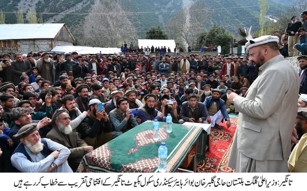 آئندہ مالی سال کے اے ڈی پی میں نئے انتظامی یونٹس کو مکمل فعال بنانے کیلئے محکمہ مواصلات و تعمیرات عامہ کنسپٹ پیپرز تیار کرکے متعلقہ فورم میں پیش کریں۔وزیر اعلیٰ نے کہا کہ نئے انتظامی یونٹس کا قیام داریل، تانگیر، گوپس / یاسین اور روندو کے عوام کا دیرینہ مطالبہ تھا۔ ہم نے عوام کے اس جائز مطالبے کو عملی جامع پہنایا۔ سابقہ ادوار میں نئے چار انتظامی یونٹس بنانے کے قیام کے حوالے سے کوئی خاطر خواہ کام نہیں کیا گیااور ہم نے عوام کے مسائل اور محرومی کو مدنظر رکھتے ہوئے ان انتظامی یونٹس کو فعال بنایا۔ وزیر اعلیٰ نے کہاکہ تمام نئے انتظامی یونٹس میں تمام محکموں کے سربراہان کیلئے دفاتر اور رہائش کے منصوبے کو نئے اے ڈی پی میں شامل کریں گے۔ ہماری حکومت عملی اقدامات پر یقین رکھتی ہے۔ نئے انتظامی یونٹس کے ایڈیشنل ڈپٹی کمشنرز کو کلکٹر اور ڈسٹرکٹ مجسٹریٹ کے مکمل اختیارات حاصل ہوں گے۔ نئے ایڈیشنل ڈسٹرکٹس کے قیام سے عوام کے مسائل ان کے دہلیز پر حل ہوں گے۔ دور دراز علاقوں میں معاشی سرگرمیوں کو فروغ ملے گا اور عوام کی معیار زندگی میں بہتری آئے گی۔ وزیر اعلیٰ نے کہاکہ عوامی خدمت ہی ہمارا نصب العین ہے۔ان خیالات کا اظہار وزیر اعلیٰ گلگت بلتستان حاجی گلبر خان نے تانگیر میں ایڈیشنل ڈسٹرکٹ کے افتتاحی تقریب سے خطاب کرتے ہوئے کیا۔ وزیر اعلیٰ نے اس موقع پر تانگیر دو میگاواٹ پاور پروجیکٹ کو 10مئی تک مکمل کرنے کے بھی ہدایات دیئے۔ بعدازیں وزیر اعلیٰ گلگت بلتستان حاجی گلبر خان نے تانگیر بگیوٹ ہائیر سیکنڈری سکول کے افتتاحی تقریب سے خطاب کرتے ہوئے کہا کہ دور دراز اور پسماندہ علاقوں میں تعلیمی سہولیات کی فراہمی حکومت کی اولین ترجیحات میں شامل ہے۔ محدود وسائل کے باوجود تانگیر میں تعلیم اور صحت کی سہولیات عوام کو فراہم کرنے کیلئے مختلف منصوبے مکمل کئے گئے ہیں۔ ہم نے سیاسی وابستگیوں کو بالاتر ہوکر تانگیر اور گلگت بلتستان کے عوام کی خدمت کی ہے۔ وزیر اعلیٰ نے کہاکہ منتخب ممبران کی ترجیح اجتماعی مفادات کو مدنظر رکھتے ہوئے علاقے کی تعمیر و ترقی کیلئے کام کرنا ہے۔ داریل تانگیر ایکسپریس وے کی تعمیر سے خطے میں سیاحت اور معیشت کے فروغ ملے گا۔داریل تانگیر ایکسپریس وے منصوبے پر جلد کا آغاز ہوگا۔وزیر اعلیٰ گلگت بلتستان نے اپنے دورہ تانگیر کے موقع پر 20بیڈ فیملی چائلڈ ہسپتال کا سنگ بنیاد بھی رکھا۔وزیر اعلیٰ گلگت بلتستان کے تانگیر آمد پر تانگیر کے عوام نے والہانہ استقبال کیا۔