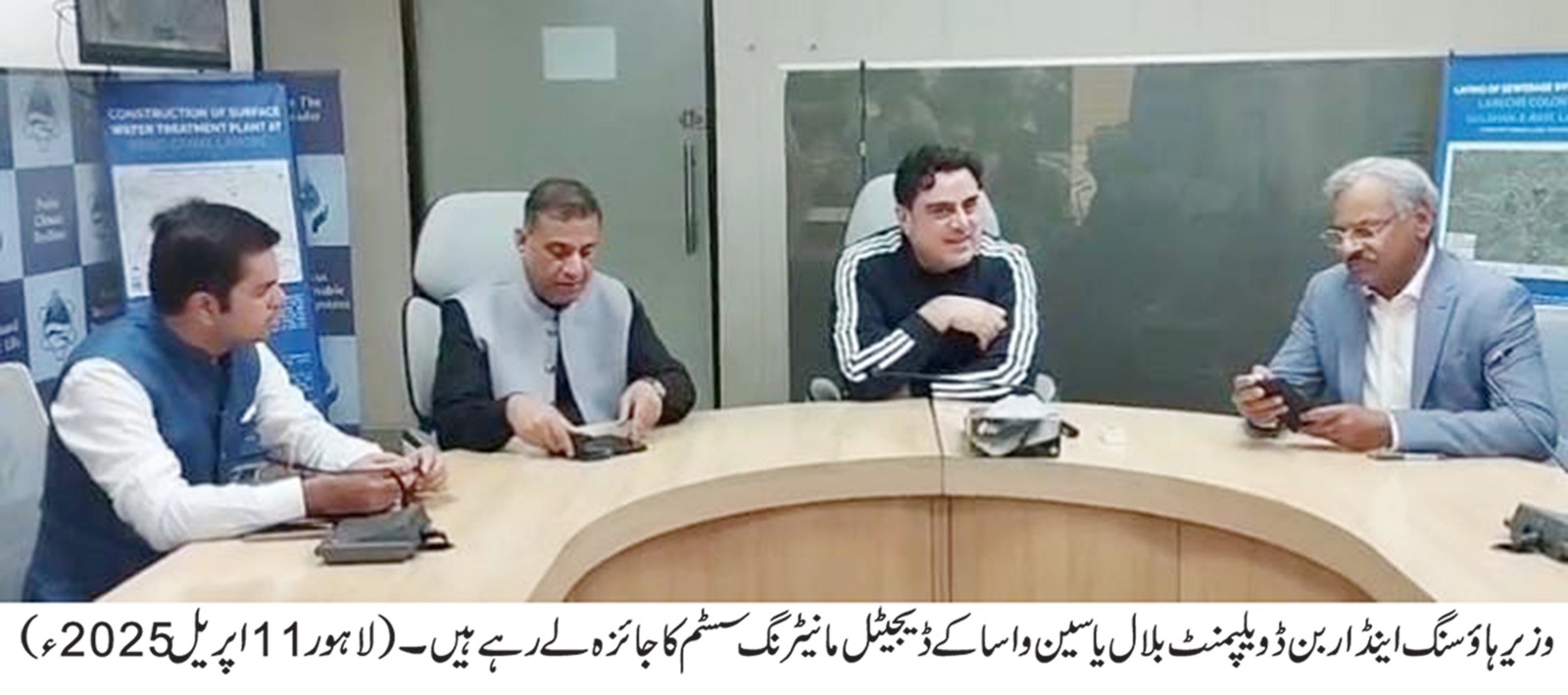 شہر بھر میں وقفے وقفے سے بارش کے بعد وزیر ہاؤسنگ اربن ڈویلپمنٹ اینڈ پبلک ہیلتھ انجینئرنگ بلال یاسین نے واسا ہیڈ آفس کا دورہ کیا،ڈی جی واسا پنجاب طیب فرید اور ایم ڈی واسا غفران احمد نے استقبال کیا، وزیر ہاؤسنگ بلال یاسین اور ڈی جی واسا پنجاب نے شہر بھر میں جاری نکاسی آب آپریشن کا جائزہ لیا، ایم ڈی واسا غفران احمد نے نکاسی آب اور رین ڈیش بورڈ کے متعلق تفصیلی بریفنگ دی،صوبائی وزیر ہاؤسنگ نے شہر بھر کے انڈر پاسز پر نصب لائیو کیمروں کے ذریعے جاری مانیٹرنگ کی ہدایات دیں،اس موقع پر ان کا کہنا تھا کہ شہر کے مختلف علاقوں کا دورہ کرتے ہوئے یہاں آیا ہوں، بر وقت نکاسی آب کے تمام انتظامات مکمل رکھے جائیں، بارش کا بعد شہر کے موسم میں خوشگواری کا احساس ہے، شہری موسم کو انجوائے کریں، بروز جمعی صبح