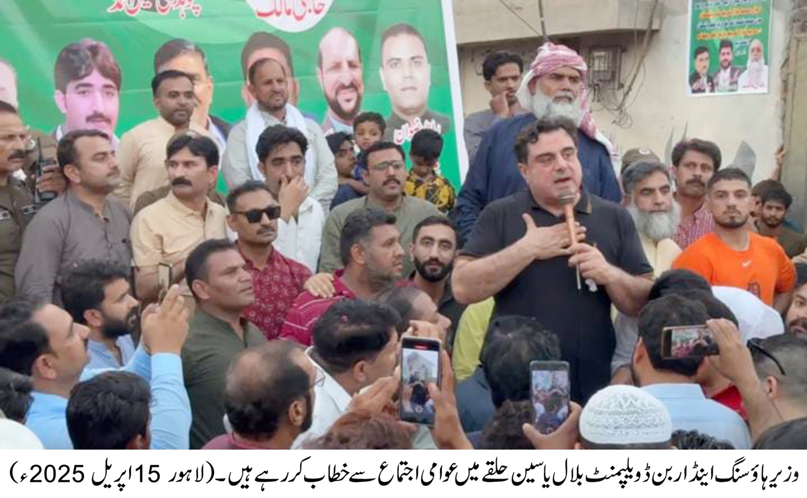 وزیر ہاؤسنگ اربن ڈویلپمنٹ اینڈ پبلک ہیلتھ انجینئرنگ بلال یاسین کی حلقے میں آمد کے موقع پر مسلم لیگی کارکنوں اور حلقہ عمائدین نے پھولوں کی پتیوں، ڈھول اور گھوڑوں کے رقص سے بھرپور استقبال کیا،وزیر ہاؤسنگ بلال یاسین نے حلقے میں ٹیوب ویل کا افتتاح کیا، صوبائی وزیر بلال یاسین نے عوامی اجتماع سے خطاب کرتے ہوئے کہا کہ عوامی فلاح کے منصوبوں کا آغاز ہوچکا،اب جلد تکمیل کی جانب گامزن ہیں، میاں نواز شریف کا سپاہی ہوں، یہ حلقہ انکی امانت ہے،دن رات آپکی خدمت میں گزار رہا ہوں، صاف پانی کی فراہمی، نکاسی آب اور سڑکوں کی تعمیر وزیر اعلیٰ پنجاب کی اولین ترجیحات میں شامل ہے، شہر لاہور کو جدید شہروں کی صف میں کھڑا کرنے کیلئے پانی، صفائی، انفراسٹرکچر اور خوبصورتی پر دن رات کام کیا جارہا ہے، وزیر ہاؤسنگ پنجاب کا مزید کہنا تھا کہ وزیر اعظم پاکستان محمد شہباز شریف کی قیادت میں ملکی معیشت سنبھل رہی ہے، بجلی و پٹرول کی قیمتوں میں کمی آرہی ہے، مہنگائی اور شرح سود میں واضح کمی ہماری حکومت کی کارکردگی کا منہ بولتا ثبوت ہیں، انشاء اللہ 5 سالوں میں پوری محنت سے ملک کے حالات بدلیں گے اور بہتر پاکستان کی عملی شکل دکھائیں گے۔