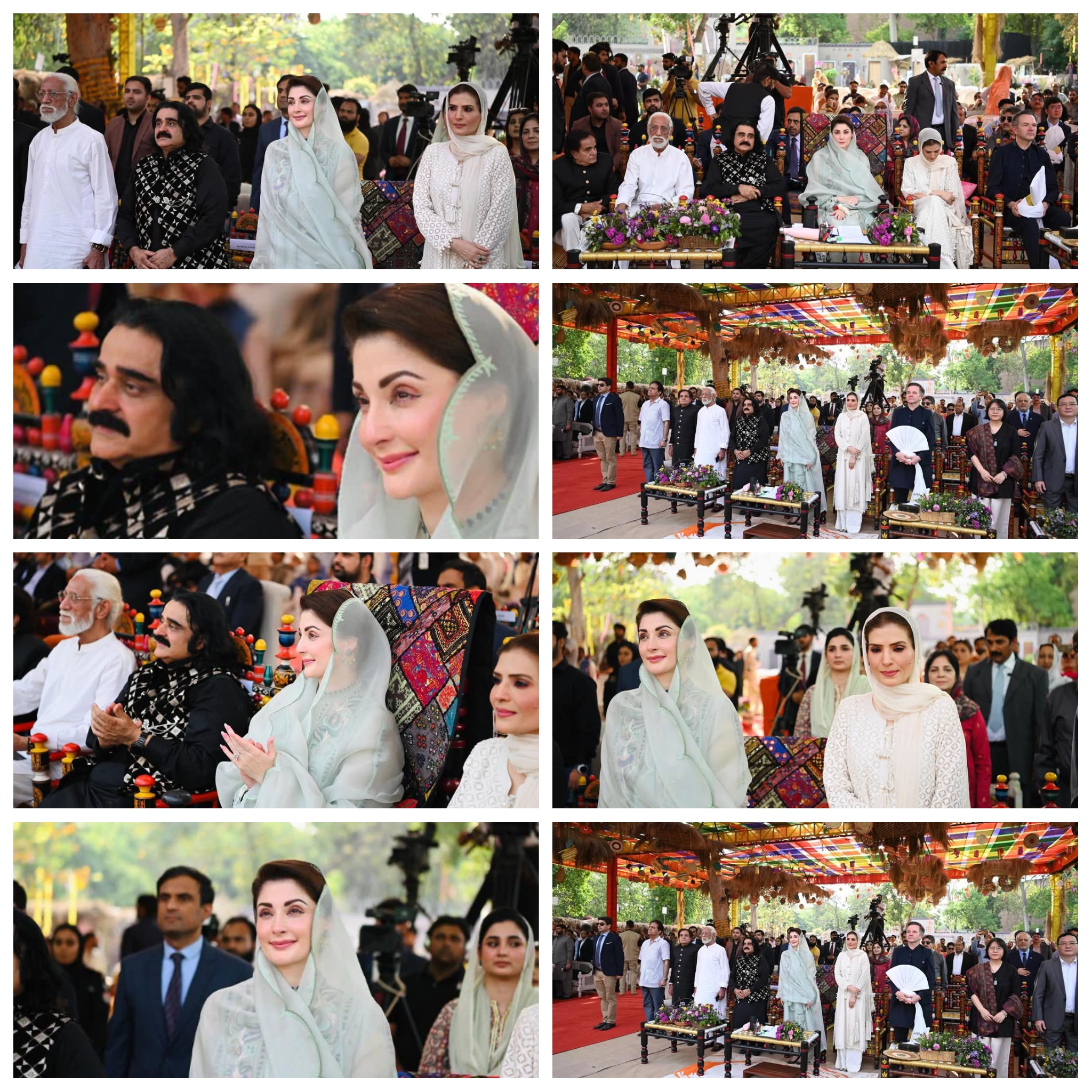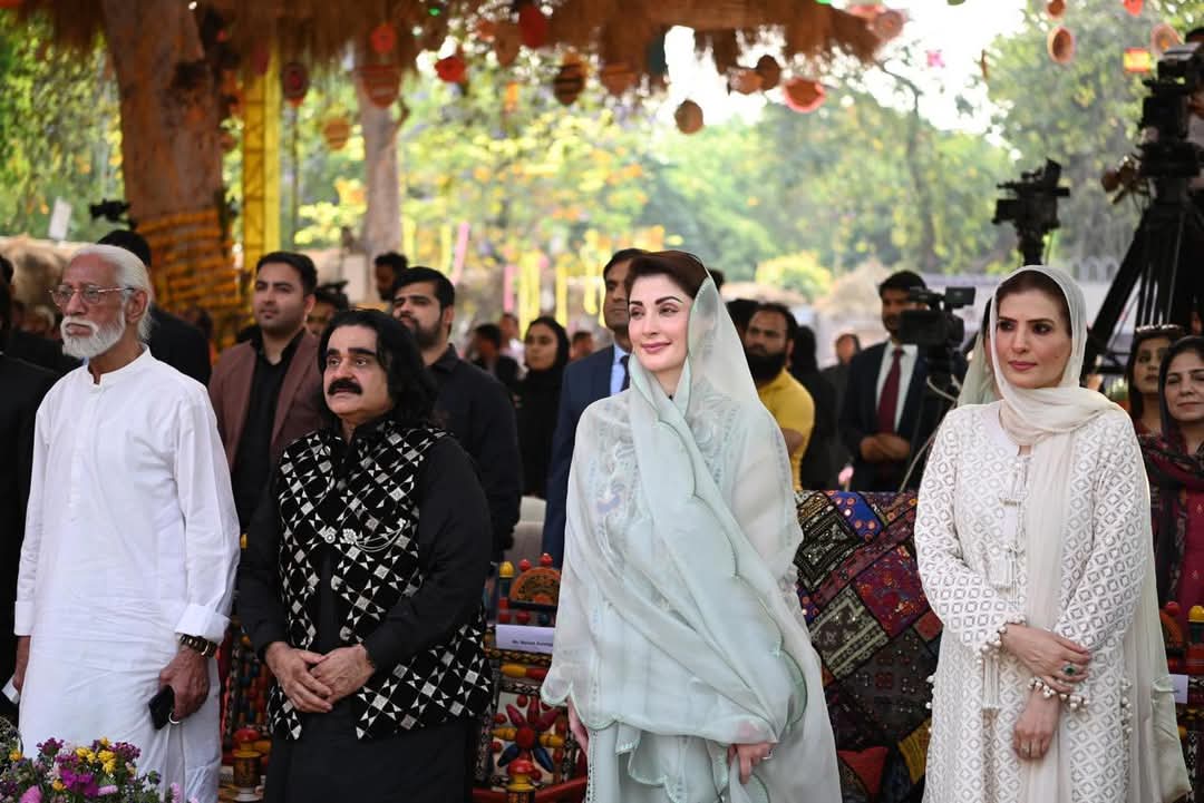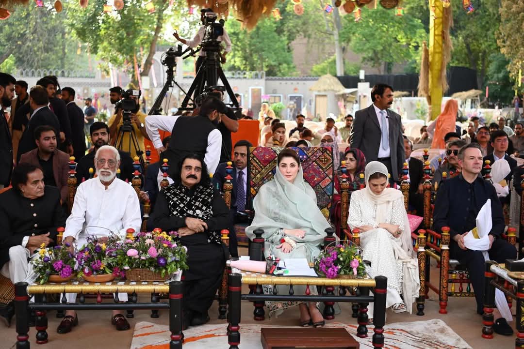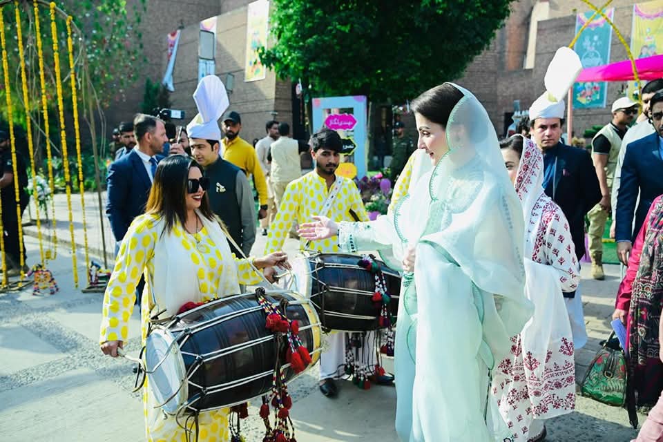 ”شالا وسدا روے پنجاب“صوبہ کی تاریخ میں پہلی مرتبہ پنجاب دیہاڑ کی تین روزہ رنگارنگ تقریبات کاالحمراء میں آغاز ہوگیا۔وزیراعلیٰ مریم نوازشریف نے محکمہ اطلاعات وثقافت کے زیر اہتمام پنجاب دیہاڑ کی تقریب میں خصوصی طورپر شرکت کی۔ وزیراعلیٰ مریم نوازشریف کے الحمراء آرٹس کونسل پہنچنے پر روایتی انداز میں پرتپاک استقبال کیاگیا۔الحمراء آرٹس کونسل کے احاطے میں ڈھول کی دھمک، رنگیلے گھوڑے، اونٹوں کا مست رقص اور فوک موسیقی بھی پیش کی گئی۔وزیراعلیٰ مریم نوازشریف نے استاد اللہ بخش گیلری میں پنجاب کے حسین نظاروں پر مشتمل آرٹ نمائش کا افتتاح بھی کیا۔ذوالفقار زلفی کی بنائی پینٹنگ میں لاہور کی ثقافت کی شاندار عکاسی کی گئی۔ وزیراعلی مریم نواز شریف نے پینٹنگ کو سراہا۔وزیر اطلاعات وثقافت عظمیٰ زاہد بخاری نے خطاب میں تفصیلی بریفنگ دی اور وزیراعلی مریم نواز شریف کی آمد کا خیر مقدم کیاگیا۔وزیر اعلیٰ مریم نواشریف نے برنی گارڈن میں انوکھے اور منفرد”پنڈ“ کاتفصیلی دورہ کیا۔وزیراعلی مریم نواز شریف نے چوڑیوں، کھگو گھوڑے، کھسے، بلاک پرنٹ،مکیش اور گوٹا کناری ملبوسات میں گہری دلچسپی کا اظہار کیا۔دستکاری،پنجابی پگڑی، شملے،گنڈاسا، کھنڈا،ہڑپہ اور ٹیکسلا آرٹ نمونوں کے سٹال کا معائنہ کیا۔وزیراعلی مریم نواز شریف نے گندھارا آرٹ مجسمے، ایمبرائیڈری آرٹ،سولر پینٹنگ پینسل مائیکرو آرٹ اور چاول کے دانے پر خطاطی دیکھی۔ کھجور کے رنگ برنگ پتوں سے بنی چھابی، پچھی، چنگیر،پلیٹ، پکھے کی بناوٹ کا مشاہدہ کیا۔ وزیراعلی مریم نواز نے چاک پر مٹی کی برتن، کھڈی پر کپڑے کی بنت، اونٹ کی کھال کی لیمپ دیکھے اور پسند کئے۔ وزیراعلی مریم نواز شریف نے روایتی پنجابی مونڈھے،منجیاں، لکڑی کے چولہے، چوبارہ اور دیگر اشیاء میں اظہارِ دلچسپی لی۔ وزیراعلی مریم نواز شریف نے دستکاری سٹال پر ننھی وردا اور دیگر فنکاروں کی خواہش پر تصاویر بنوائیں۔وزیراعلیٰ مریم نوازشریف نے روایتی دیہاتی ماحول دیکھ کر اظہار مسرت، منفرد آئیڈیاکو سراہا۔ وزیراعلیٰ مریم نوازشریف نے”پنڈ“میں چھپرچھت والے روایتی گھروں،فرنیچر، مٹی کے برتن اور دیگرروزمرہ استعمال کی روایتی اشیاء دیکھ کر اظہار مسرت کیا۔وزیراعلیٰ مریم نوازشریف پنجاب ثقافت دیہاڑ کی تقریب میں حامد رانا،سہیل اصغر، راشد محمود،عارف لوہار،ریشم اور دیگر سینئرفنکاروں کے درمیان بیٹھ گئیں۔ تقریب میں انسٹرومنٹل ٹیون پر قومی ترانے پیش کیا۔غیر ملکی سفارتکاروں،صوبائی وزراء، معاونین، افسران اور دیگر شرکا نے پگڑیاں پہن کر شرکت کی۔ تقریب میں پیلے اور سرخ پنجابی لاچے کرتے میں ملبوس ڈھولچیوں نے فن کا مظاہرہ کیا۔ رنگا رنگ روایتی ملبوسات پہنے فنکاروں نے گیدا پیش کیا اور روایتی جوش وخروش سے للکارے۔پنجاب ثقافت دیہاڑ کی تقریب میں روایتی بھنگڑا،ماہیے اور ٹپے بھی پیش کیے گے۔معروف گلوکار ہ حنا نصراللہ نے منفرد انداز میں پنجابی صوفی کلام پیش کیا،دیگر فنکاروں کی پرفارمنس دیکھی۔ صوبائی وزیر ثقافت و اطلاعات عظمی زاہد بخاری نے پنجاب دیہاڑ کی تقریب سے خطاب کرتے ہوئے کہا کہ75 سال کی تاریخ میں پہلی مرتبہ بڑے پیمانے پر پنجاب دیہاڑ منایا جا رہا ہے -پنجاب کی ثقافت اتنی وسیع و عریض ہے کہ اسے لفظوں اور سٹالز میں سے شو کیس کرنا ممکن نہیں -پنجاب دیہاڑ کی تقریب میں ہر ڈویڑن کا روایتی ثقافتی سٹال لگایا گیا ہے-انہوں نے کہا کہ پنجاب کا کلچر اب یتیم نہیں رہا، مریم نواز شریف نے کلچر کو اصل روح سے بحال کیا-وزیر اعلی مریم نواز شریف فنکاروں کی سرپرستی کر رہی ہیں -ترکیہ وزٹ پر وزیر اعلیٰ مریم نواز شریف عالمی توجہ کا مرکز بنی رہی -پنجاب کا ہر شہر اپنی منفرد پہچان رکھتا ہے-محمد نواز شریف اور مریم نواز شریف فنکاروں سے ڈائریکٹ رابطے میں رہتے ہیں -فنکاروں کے لئے پیکچ اور مراعات لائیں گے۔ تقریب میں دیگر فنکاروں نے بھی شرکت کی۔