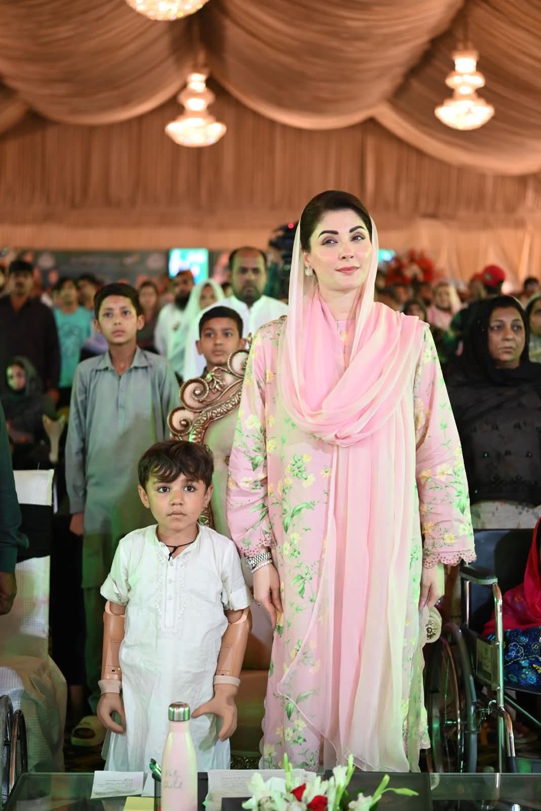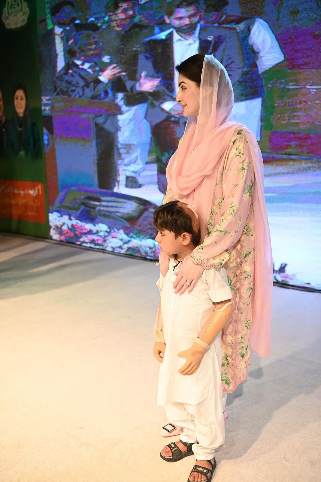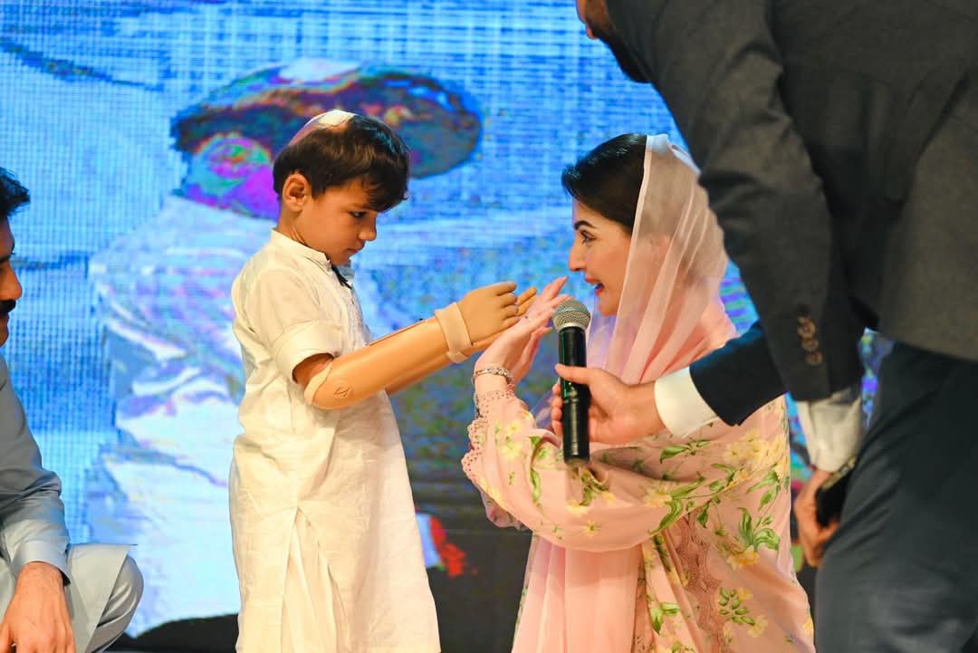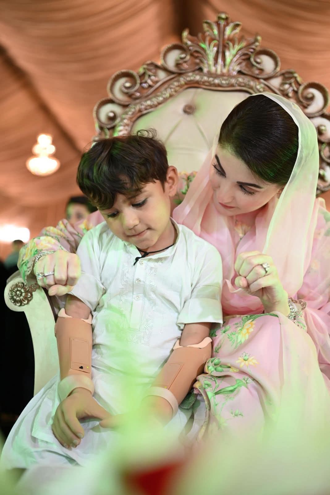 وزیراعلی مریم نواز شریف کرنٹ لگنے سے کہنی کے نیچے بازو سے محروم سہیل کو سٹیج پر خودلے کر آئیں۔ دماغ سے خود کارسگنل ملنے پر حرکت کرنے والے بازو کی تنصیب سے ننھے سہیل کی زندگی بدل گئی۔کمسن سہیل نے حادثے کے بعد پہلی مرتبہ اپنے دونوں ہاتھوں کو حرکت دی، وزیراعلیٰ کے کہنے پر تالیاں بجا کر اظہار مسرت کیا۔وزیراعلیٰ مریم نوازشریف نے ننھے سہیل سے ہاتھ ملا کر ہائی فائیو کیا۔وزیراعلیٰ مریم نوازشریف نے سہیل کی حوصلہ افزائی کی اور پیار کیا۔وزیراعلیٰ مریم نوازشریف نے کمسن سہیل کو اپنے ساتھ سٹیج سے واپس لائی۔وزیراعلیٰ مریم نواز شریف نے سپیشل افراد کیلئے معاون آلات کے سب سے بڑے پراجیکٹ کا افتتاح کردیا۔ وزیراعلی مریم نواز شریف نے خود کار وہیل چیئر، پیڈز وہیل چیئر،ٹرائی وہیل سکوٹی اور دیگر معاون آلات دئیے اور حوصلہ افزائی کی۔ تقریب میں پنجاب بھر سے 300 سے زائد سپیشل افراد نے شرکت کی۔تقریب میں آمد پر دو پیاری خاص بچیوں عائزہ اور عائشہ نے وزیراعلیٰ مریم نواز کا خیر مقدم کیا اور گلدستے پیش کئے۔وزیراعلی مریم نواز شریف تقریب میں سپیشل افراد کے درمیان بیٹھ گئیں۔وزیراعلیٰ مریم نواز شریف نے ننھی بچے کو ساتھ بٹھا لیا اور پیار کیا۔قوعت گویائی سے محروم بچوں نے تقریب میں قومی ترانے، ترجمہ تلاوت کو اشاروں کی زبان میں بیان کیا۔صوبائی وزیر سہیل شوکت بٹ نے تقریب سے خطاب میں پراجیکٹ کی تفصیلات سے آگاہ کیا۔صوبہ بھر میں سپیشل افراد کو ایک ارب کے مصنوعی اعضا،الہ سماعت، وہیل چیئر اور دیگر آلات مفت دئیے جائیں گے۔سپیشل افراد کو مینوئل وہیل چیئر، رولیٹر، ٹرائی سائیکل، الیکٹرک اور موٹررائزڈ وہیل چیئر دئیے جائیں گے۔ٹرائی موٹر سائیکل، واکنگ واکر، فریم موبائل ٹائلٹ چئیر، پیڈز وہیل چیئر، کنٹرولڈ وہیل چیئر بھی دی جائے گی۔سپیشل افراد کو ضرورت کے مطابق آلہ سماعت اور مصنوعی اعضاء بھی مفت دئیے جائیں گے۔