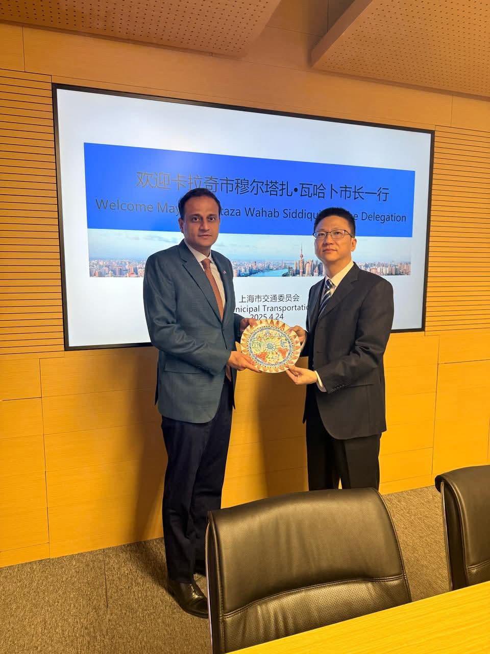 میئر کراچی بیرسٹر مرتضیٰ وہاب نے دورہ شنگھائی کے دوران میئر شنگھائی گونگ ژینگ سے ملاقات کی۔ مرتضیٰ وہاب نے شنگھائی ٹرانسپورٹیشن کمانڈ سینٹر کا دورہ بھی کیا، میئر شنگھائی نے شہر کے ٹرانسپورٹ سسٹم کے حوالے سے میئر کراچی کو بریفنگ دی۔ میئر کراچی اور میئر شنگھائی کے درمیان مختلف شعبوں میں باہمی تعاون بڑھانے پر اتفاق کیا گیا۔ مرتضیٰ وہاب شنگھائی کے دورے میں میونسپل انتظامیہ کے دیگر مراکز کا بھی دورہ کریں گے۔ میئر کراچی کے دورے میں شنگھائی کی شہری انتظامیہ اور دیگر عہدیداران سے ملاقاتیں بھی متوقع ہیں۔
