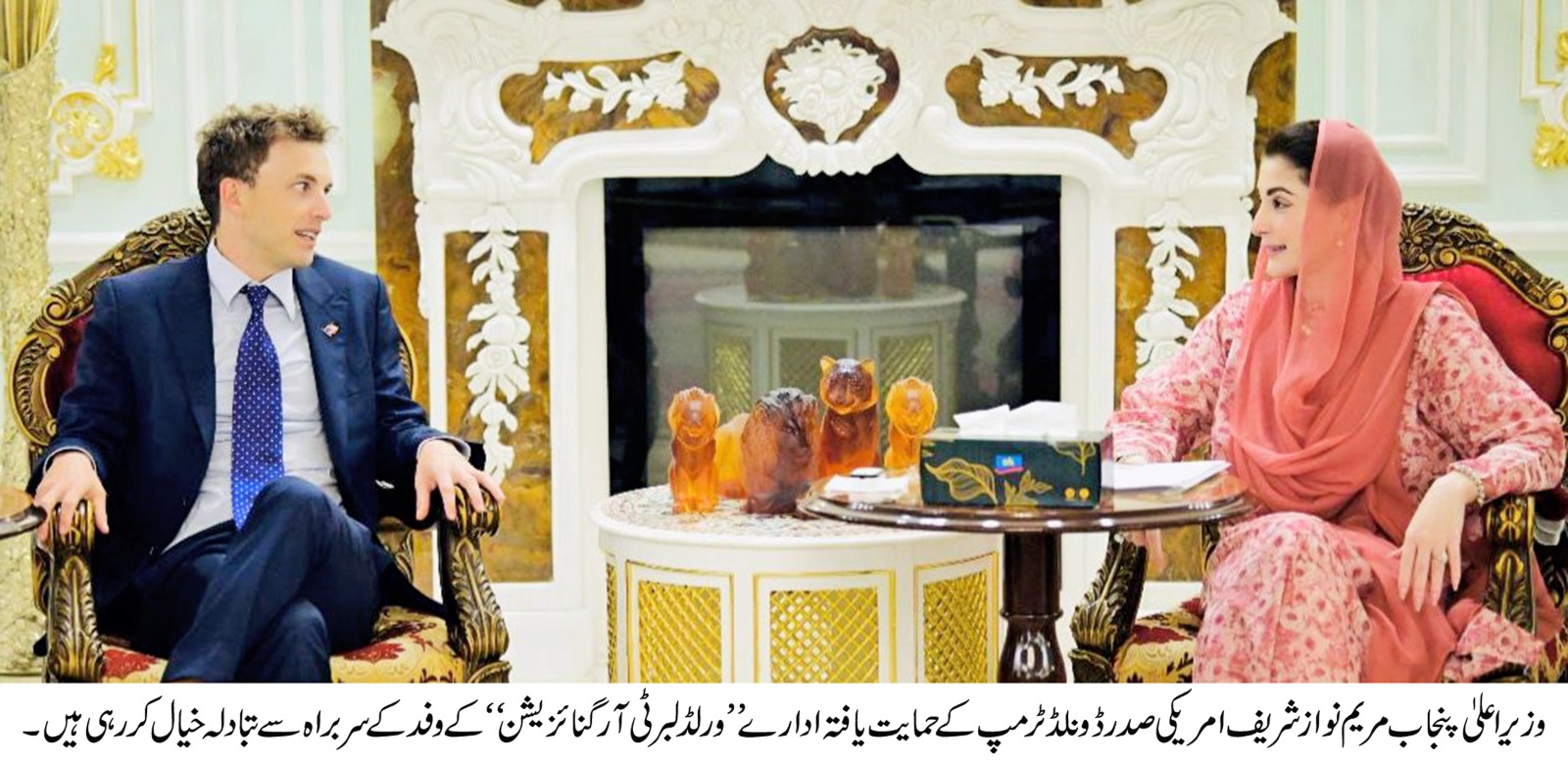 وزیراعلٰی پنجاب مریم نواز شریف سے امریکی صدر ڈونلڈ ٹرمپ کے حمایت یافتہ ادارے ”ورلڈ لبرٹی آرگنائزیشن” کے اعلیٰ سطح کے وفد نے ملاقات کی- ورلڈ لبرٹی آرگنائزیشن کے وفد میں زجری فوک مین، زجری وٹ کوف اور چیس ہیرو شامل تھے-ملاقات میں پاکستان کرپٹو کونسل کے سربراہ بلال بن ثاقب بھی موجود تھے -ملاقات میں بلاک چین اینوویشن(Block chain innovations) ٹوکنائزیشن، رئیل ورلڈ ایسٹس اورسٹیبل ایپلیکیشن پر تبادلہ خیال کیاگیا-ملاقات میں بلاک چین ٹیکنالوجی کے فروغ کے منصوبے پر غور کیاگیا-معدنیات، ایگریکلچر سمیت پاکستان کے وسیع قدرتی وسائل حقیقی اثاثوں کی ٹوکنائزیش کا جائزہ لیاگیا-ڈیجیٹل لین دین میں شفافیت، بہتر کارکردگی اور سکیورٹی امور کیلئے اسٹیبل کوائن سلو شن کے نفاذ پر بات چیت کی گئی- ملاقات میں ترسیلات زر، مالیاتی لین دین اور عالمی تجارت کے بہتر فریم ورک کی ضرورت پر زور دیاگیا-پاکستان کے معاشی اور مالیاتی نظام کو ڈی سینٹر لائزڈ فنانس ماڈل سے مربوط کرنے پر اتفاقِ رائے کیاگیا-وزیراعلی مریم نواز شریف نے ورلڈ لبرٹی فنانشل کے وفد کے اختراعی معاشی نظریات کو سراہا -وزیراعلی مریم نواز شریف نے پنجاب کو ڈیجٹیل اینوویشن کا ریجنل لیڈر بنانے کے عزم کا اظہار کیا-وزیراعلی مریم نواز شریف نے ورلڈ لبرٹی فنانشل وفد کو حکومت پنجاب کی ڈیجیٹل ٹیکنالوجیکل ایڈوانس منٹ اور مالیاتی اشتراک کار کے بارے میں آگاہ کیا-وزیراعلی مریم نوازشریف نے کہاکہ پنجاب ڈیجیٹل ٹیکنالوجی اور آن لائن ٹریڈ میں تیزی سے آگے بڑھ رہا ہے۔